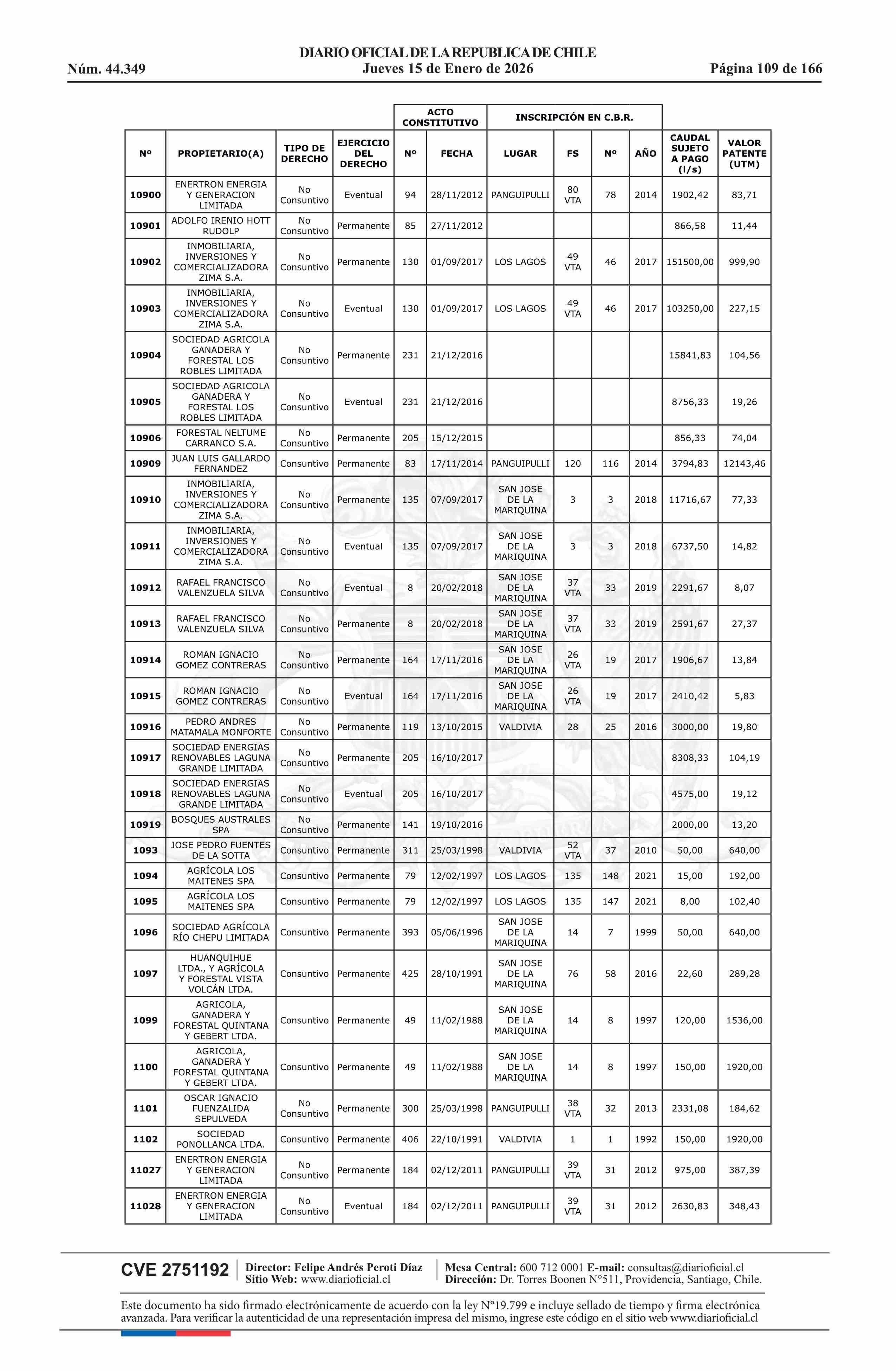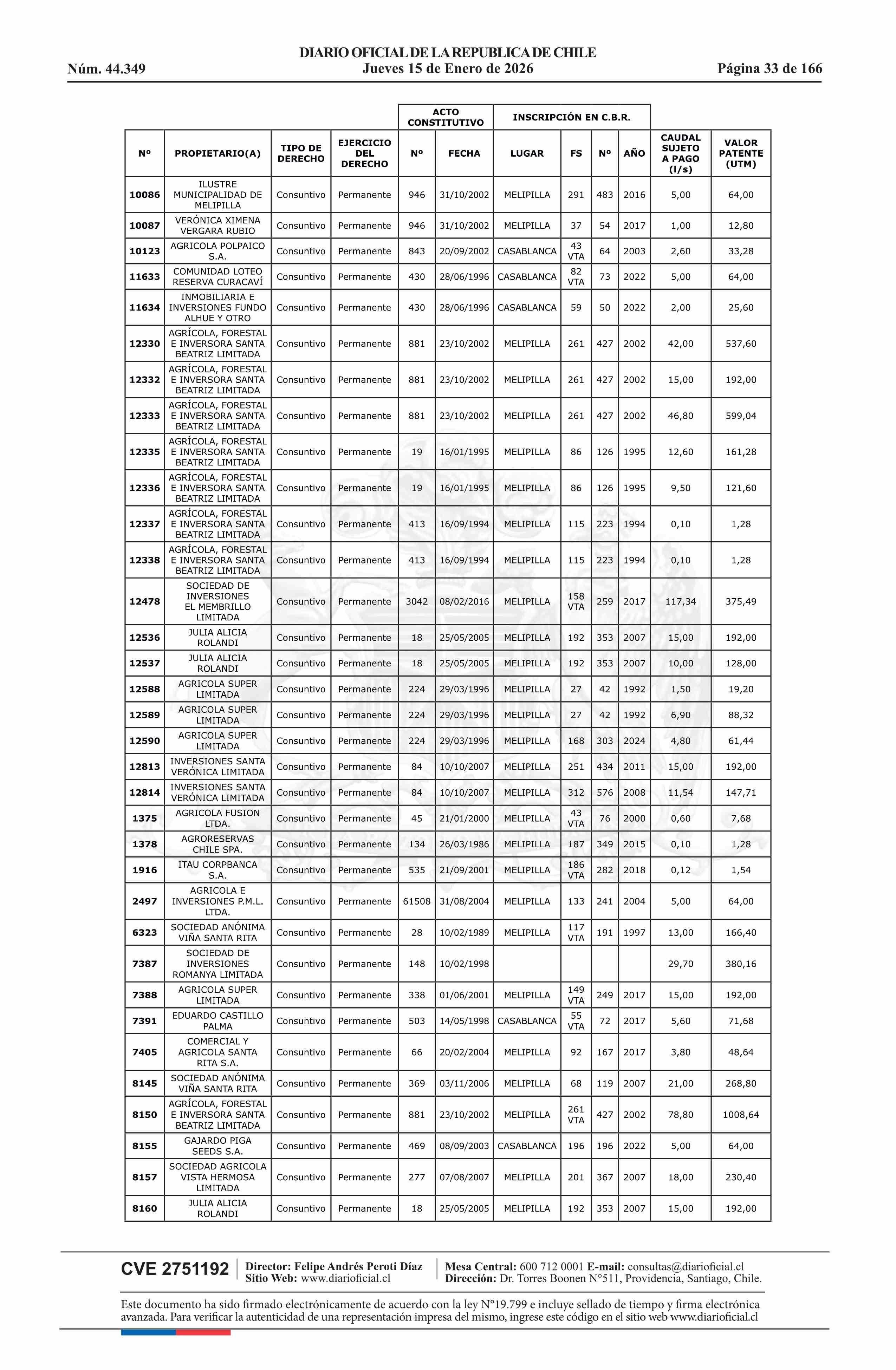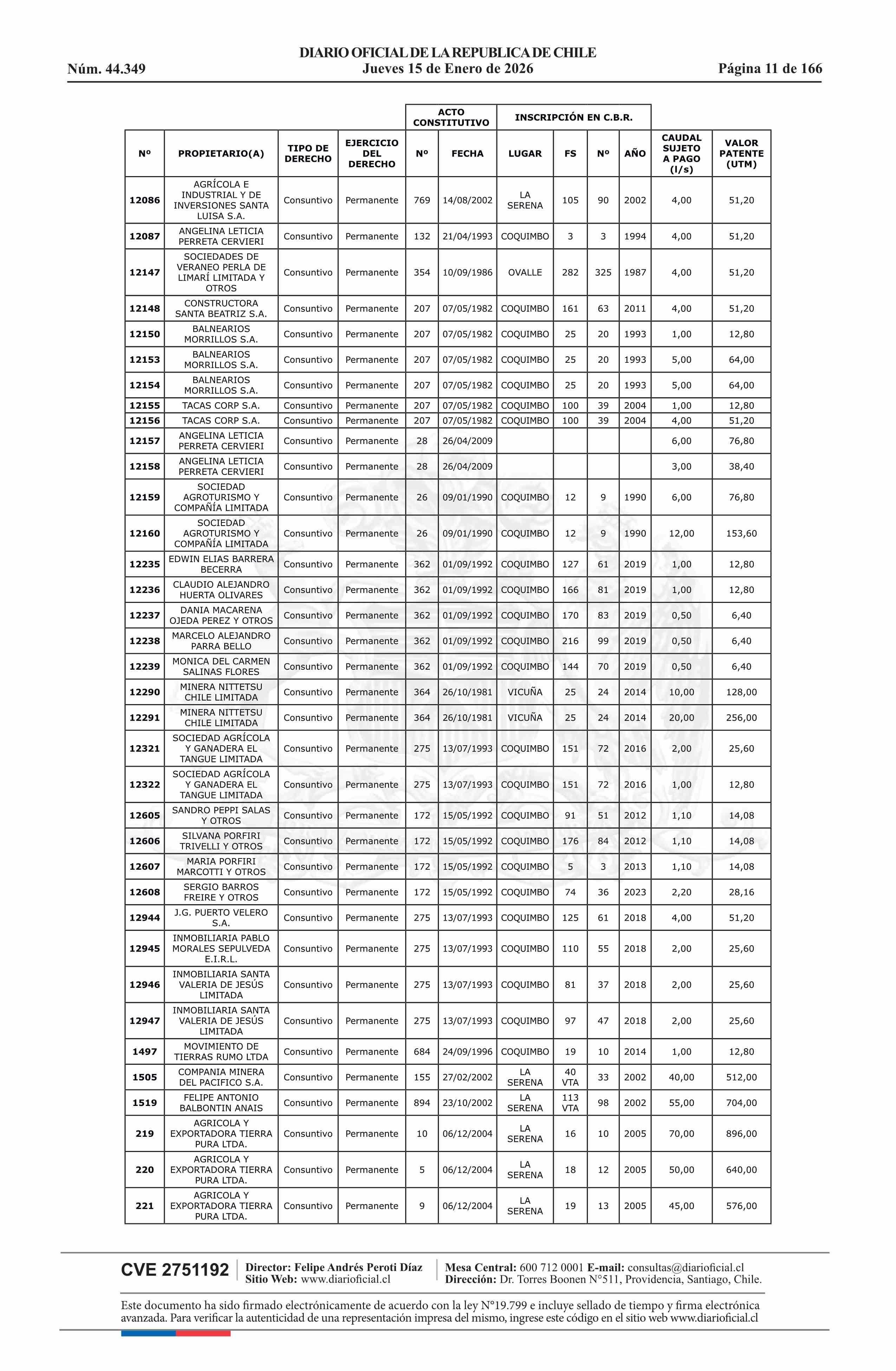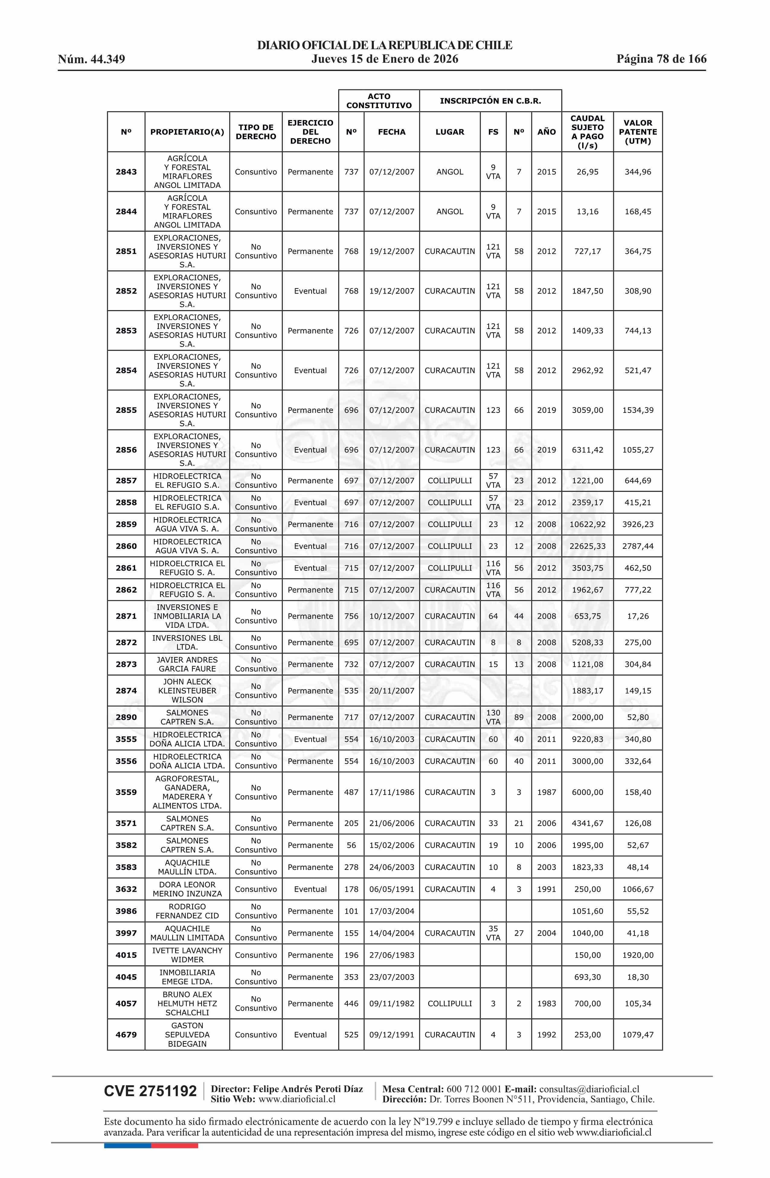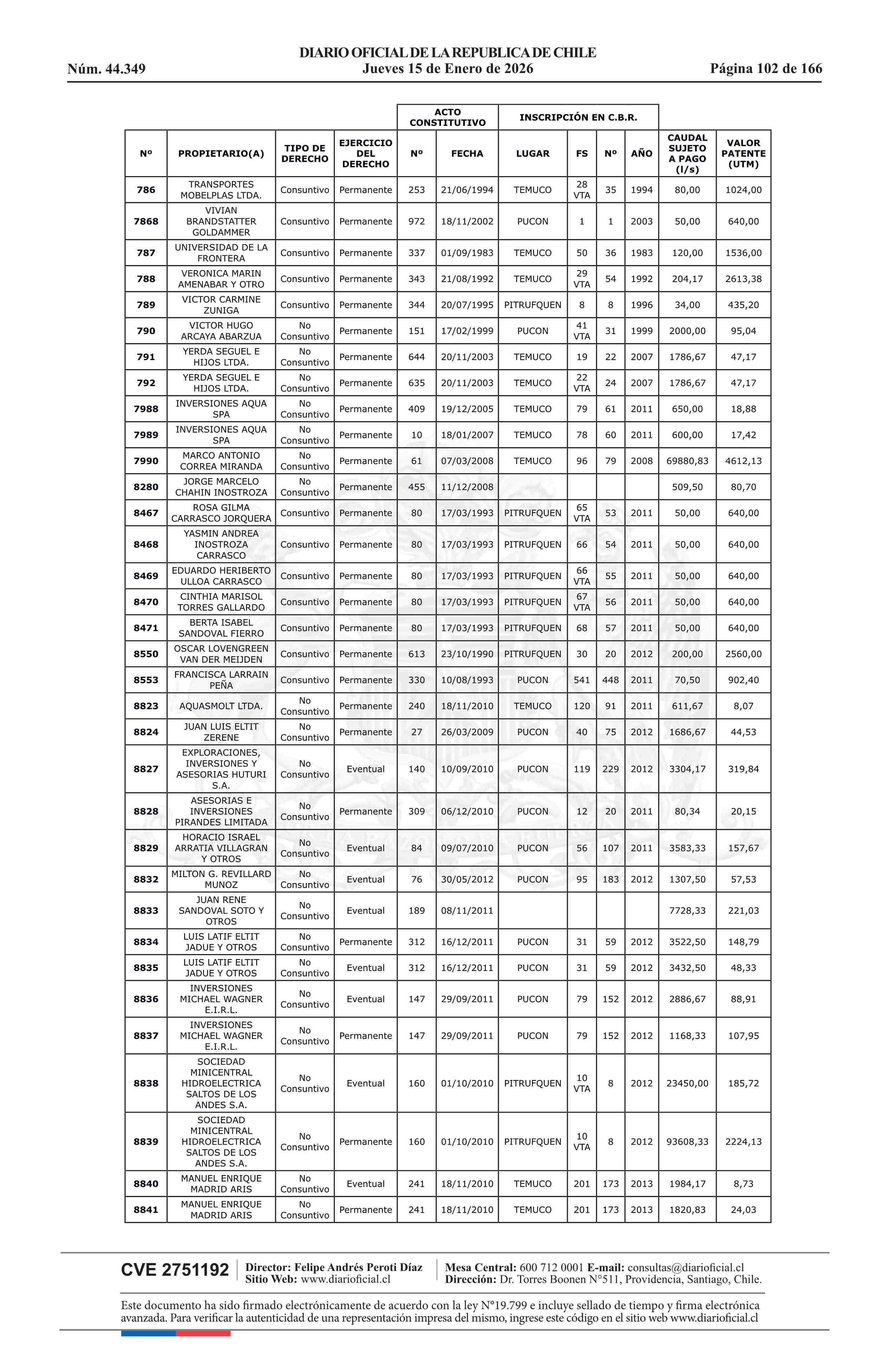 Título: Resolución exenta número 5.357, de 2025.- Fija listado de derechos de aprovechamiento de aguas afectos al pago de patente a beneficio fiscal por no utilización de las aguas, proceso 2026