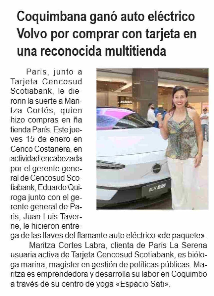 Coquimbana ganó auto eléctrico Volvo por comprar con tarjeta en una reconocida multitienda