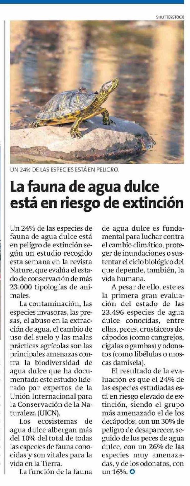 La fauna de agua dulce está en riesgo de extinción