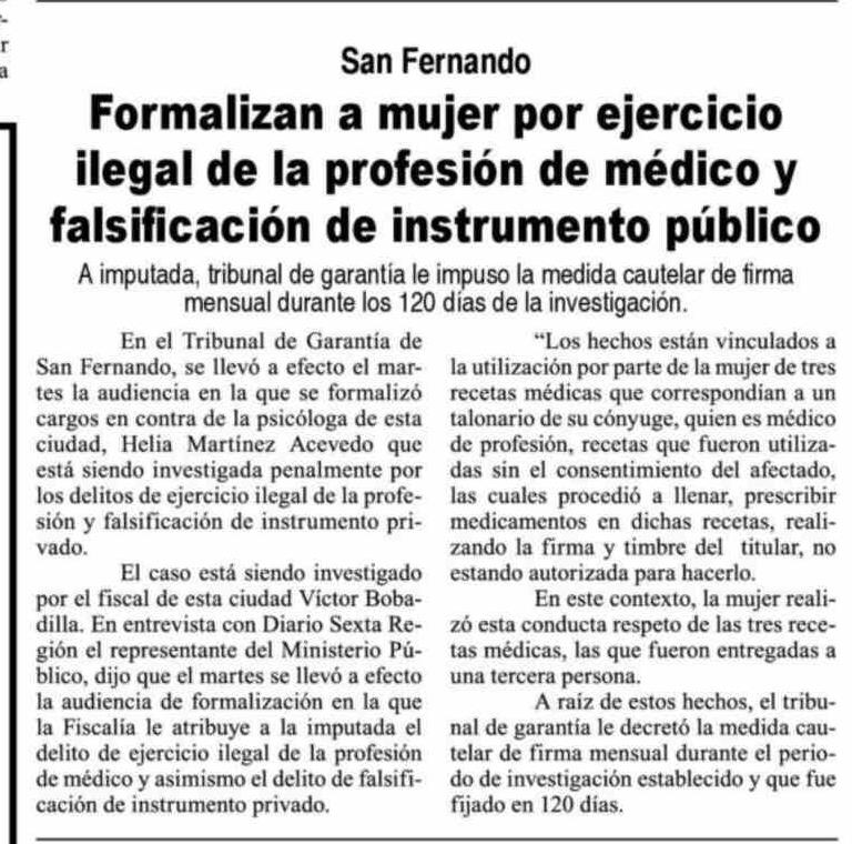 Formalizan a mujer por ejercicio ilegal de la profesión de médico y falsificación de instrumento público