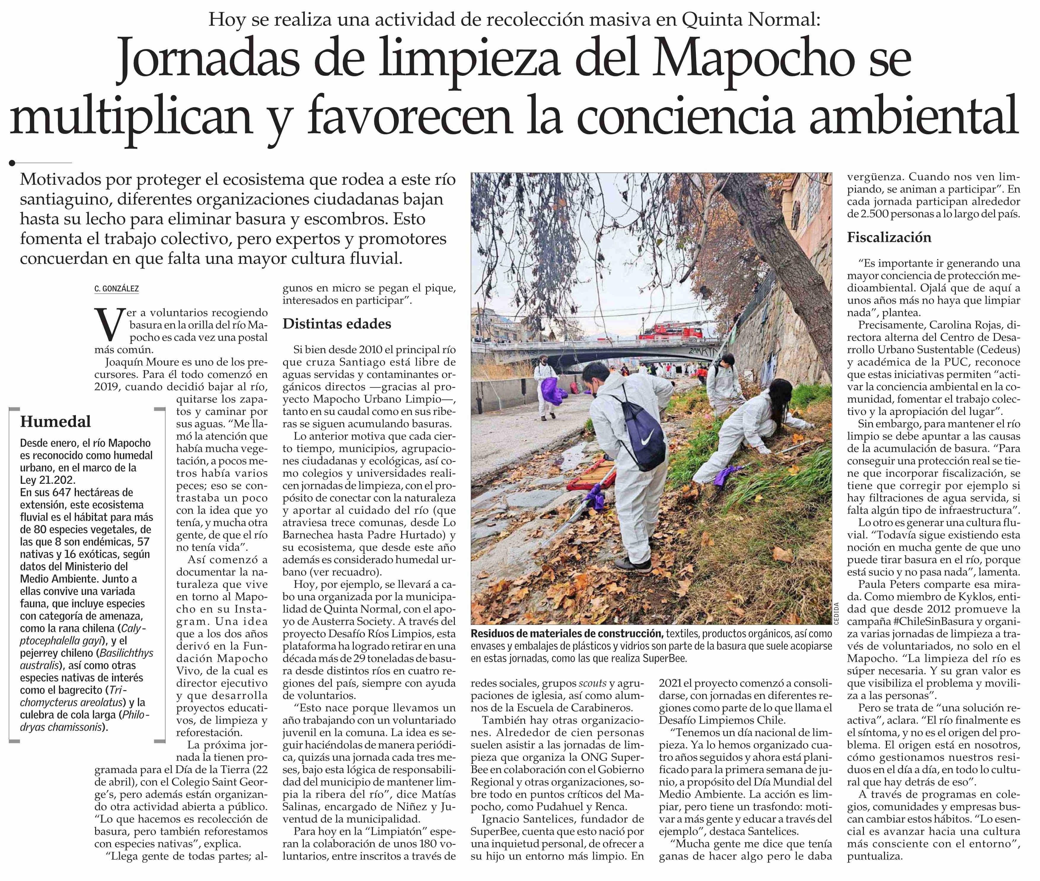 Jornadas de limpieza del Mapocho se multiplican y favorecen la conciencia ambiental