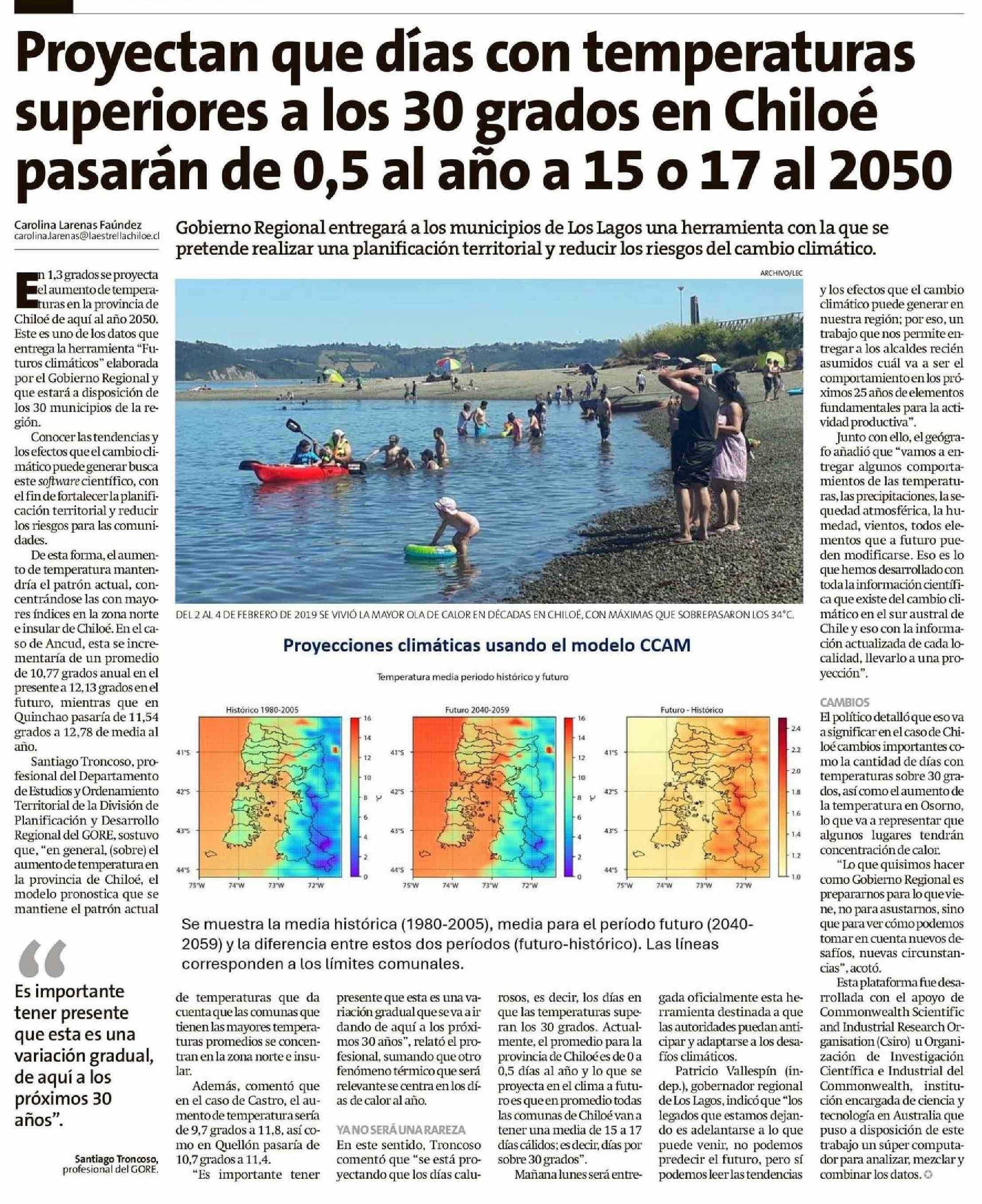 Proyectan que días con temperaturas superiores a los 30 grados en Chiloé pasarán de 0,5 al año a 15 0 17 al 2050