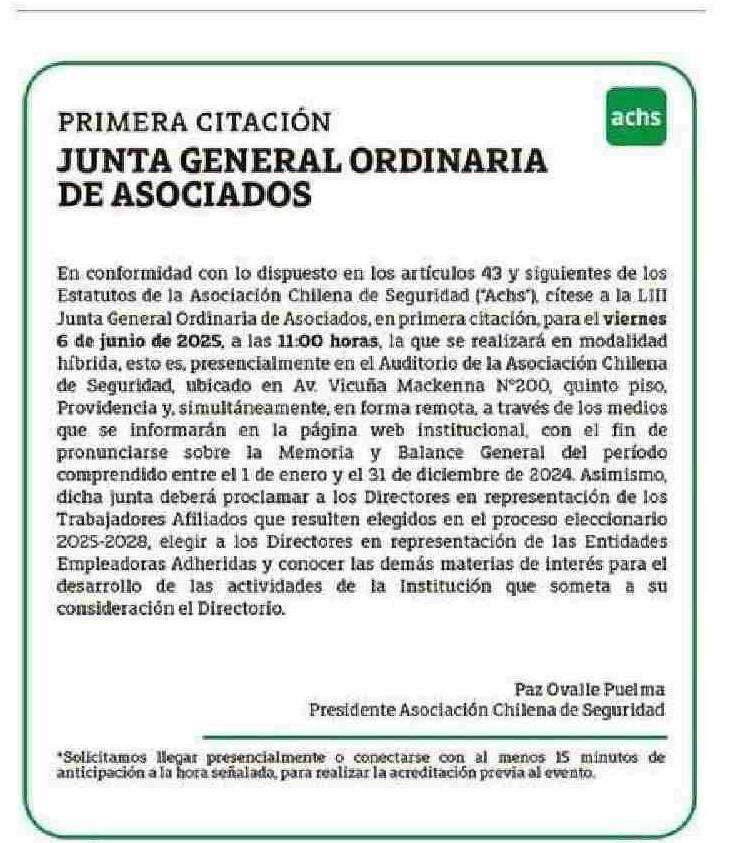 EXTRACTOS: ASOCIACIÓN CHILENA DE SEGURIDAD