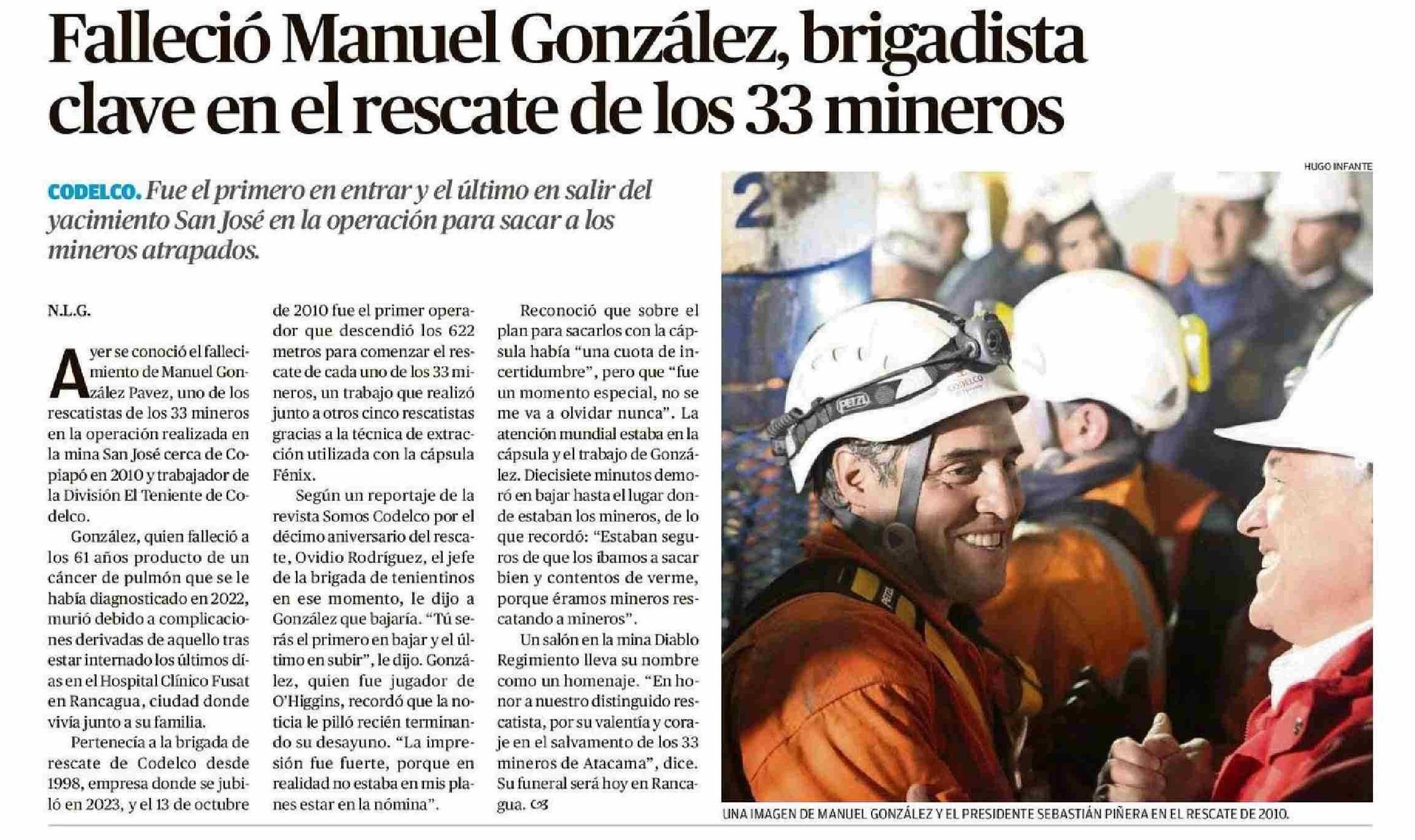 Falleció Manuel González, brigadista clave en el rescate de los 33 mineros