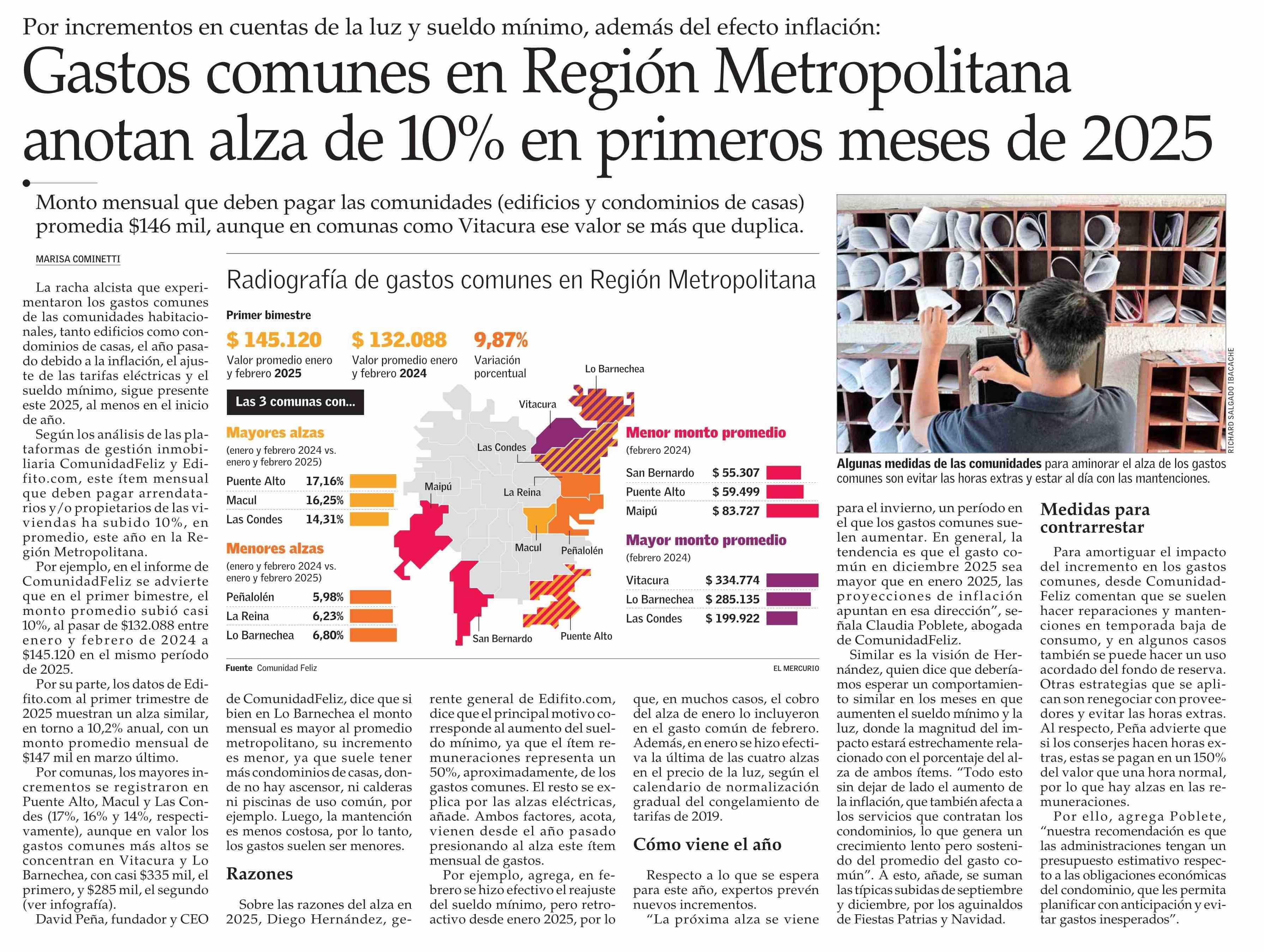 Gastos comunes en Región Metropolitana anotan alza de 10% en primeros meses de 2025
