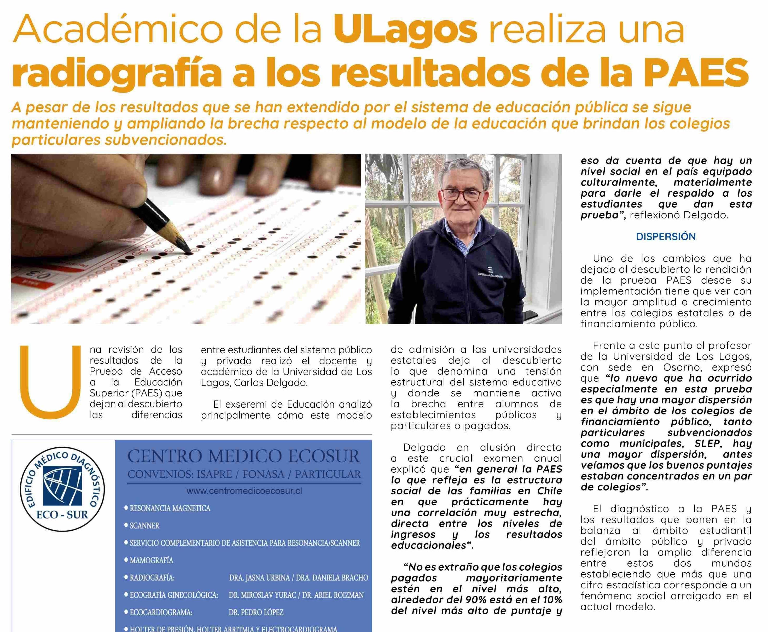 Título: Académico de la ULagos realiza una radiografía a los resultados de la PAES