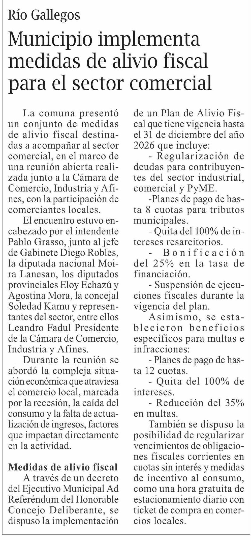 Municipio implementa medidas de alivio fiscal para el sector comercial