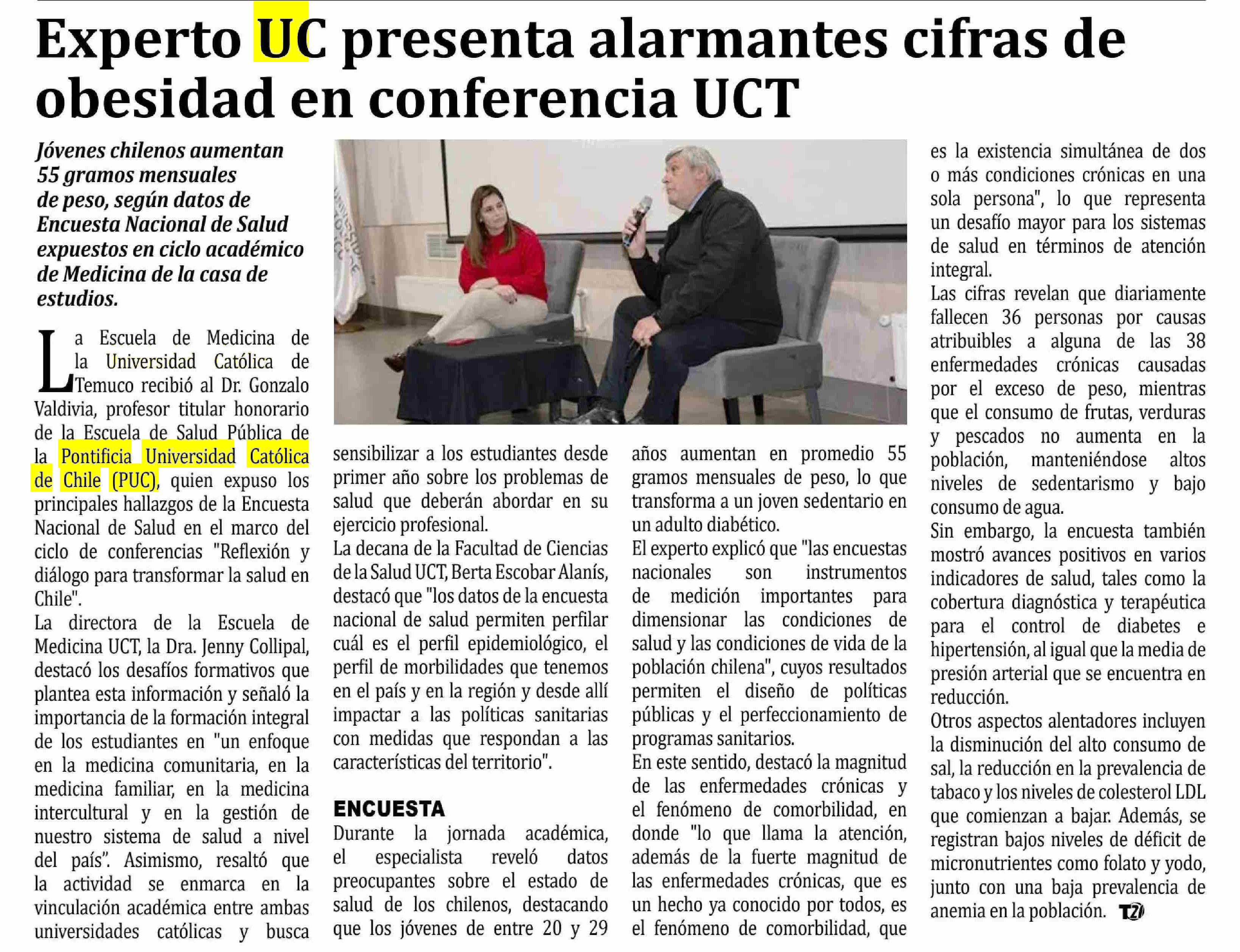 Título: Experto UC presenta alarmantes cifras de obesidad en conferencia UCT