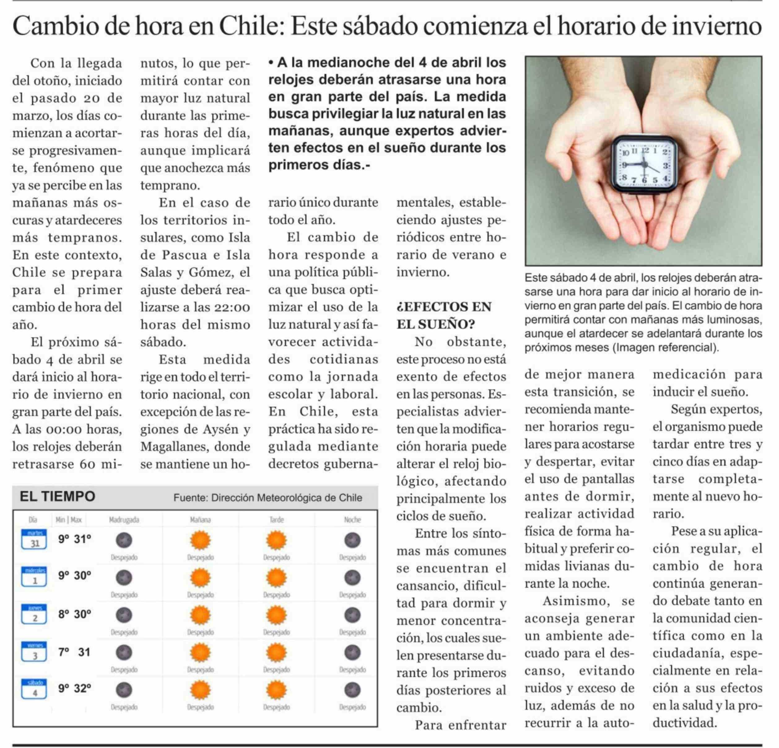 Cambio de hora en Chile: Este sábado comienza el horario de invierno