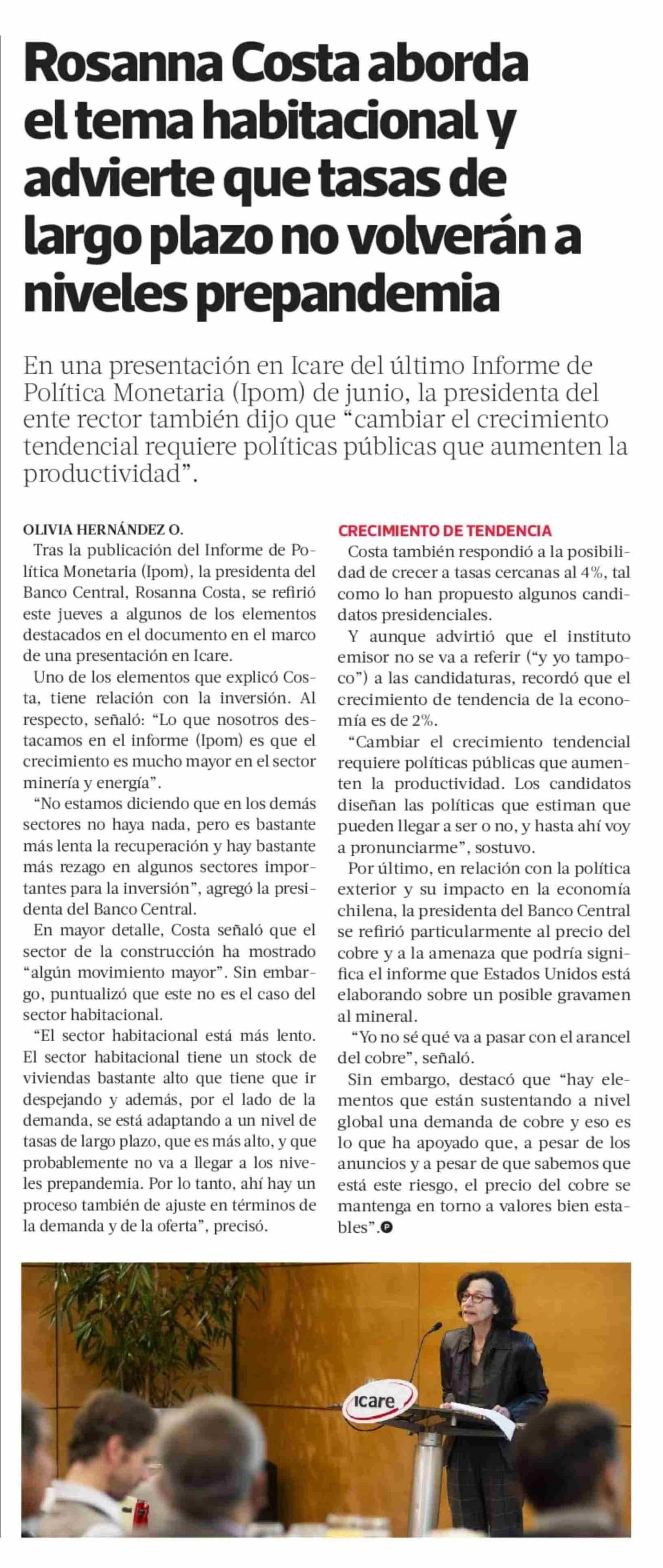 Rosanna Costa aborda el tema habitacional y advierte que tasas de largo plazo no volverán a niveles prepandemia