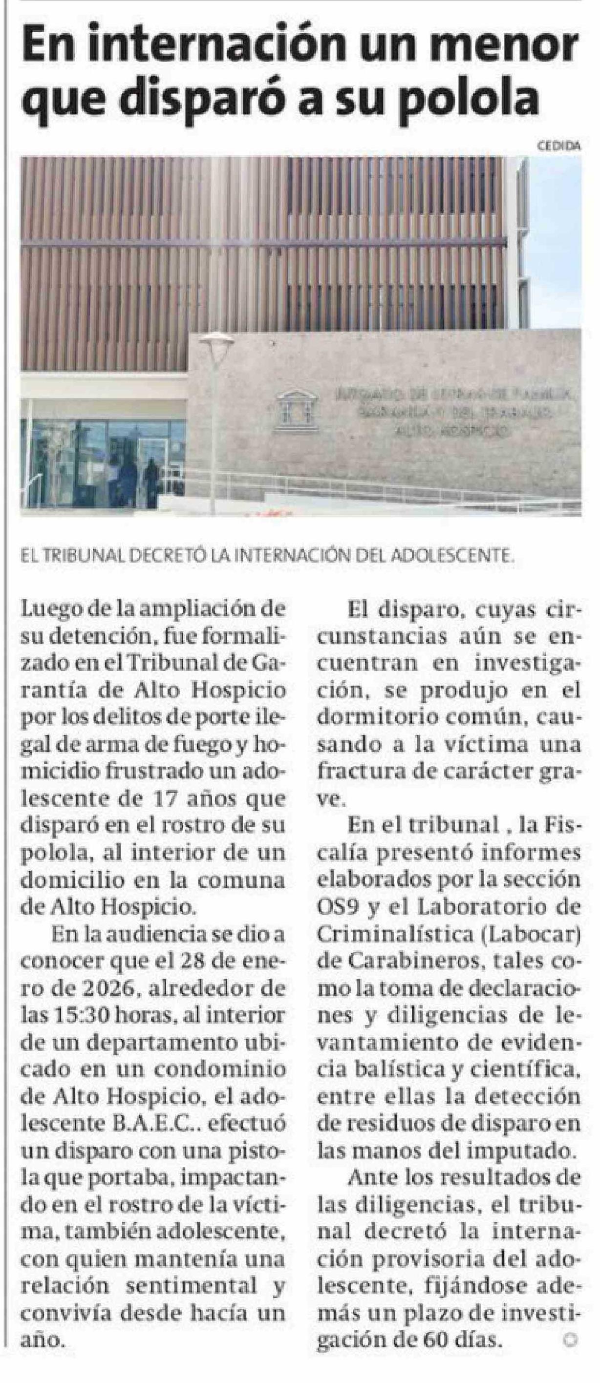 En internación un menor que disparó a su polola