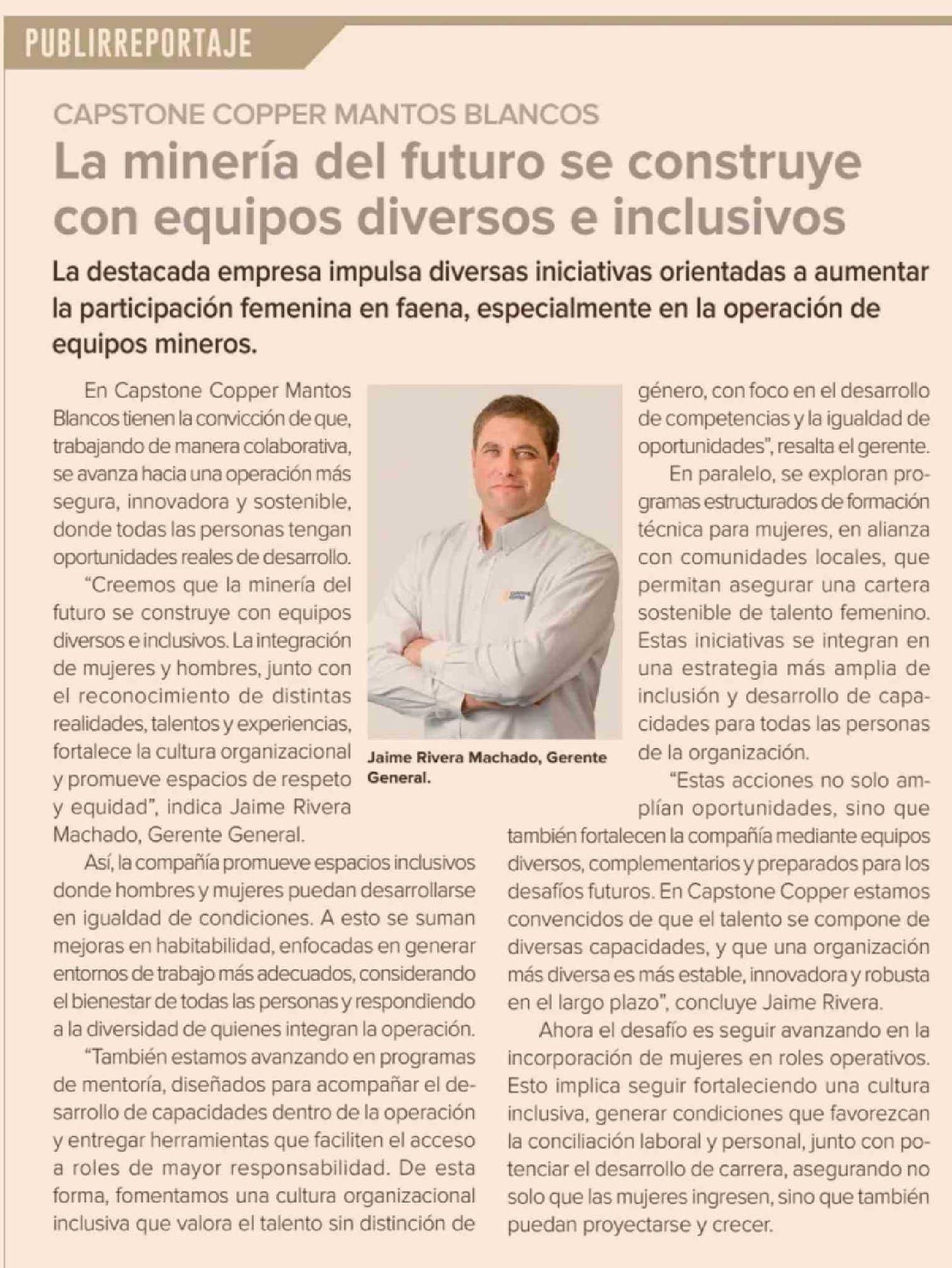 Columnas de Opinión: La minería del futuro se construye con equipos diversos e inclusivos