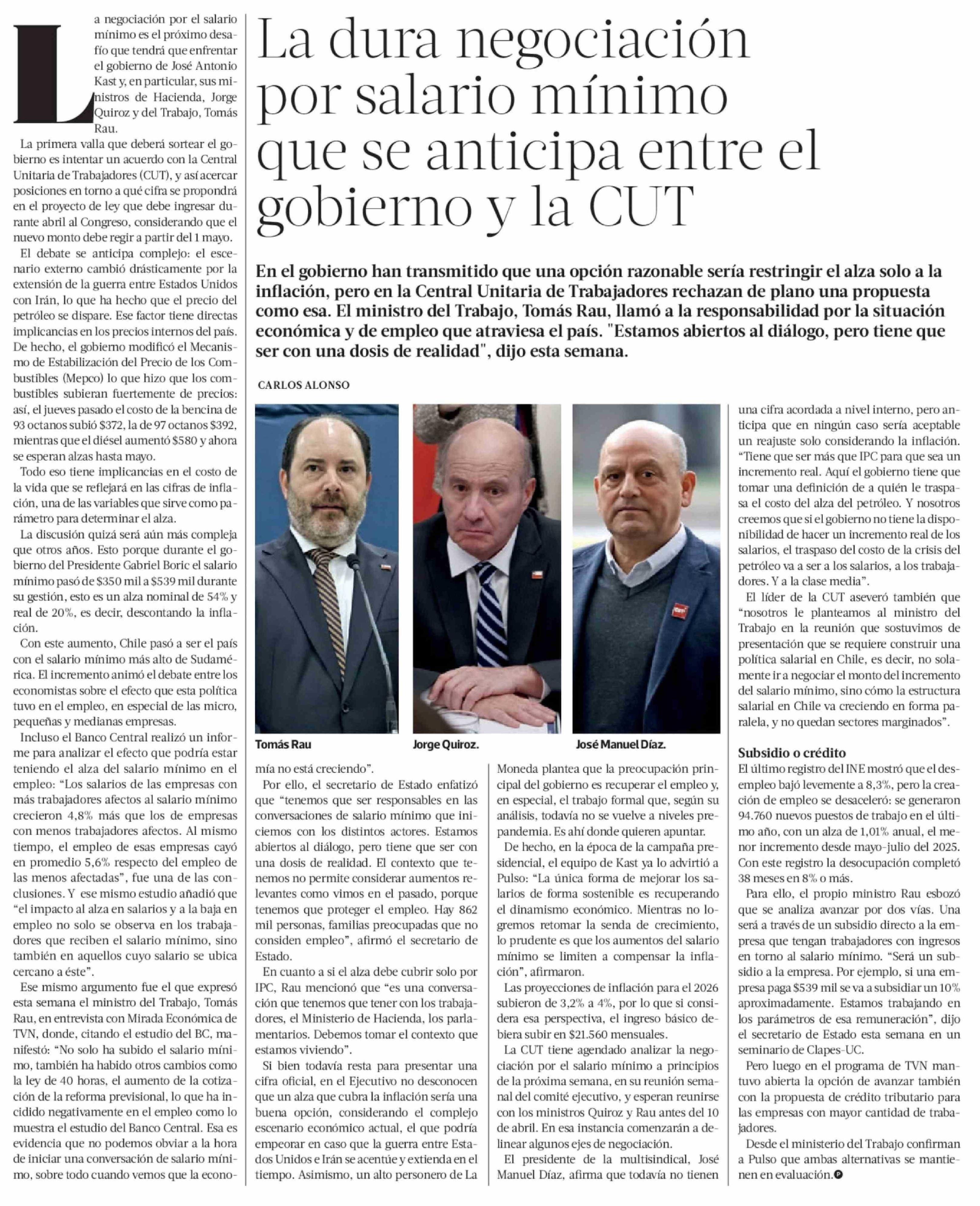 La dura negociación por salario mínimo que se anticipa entre el gobierno y la CUT