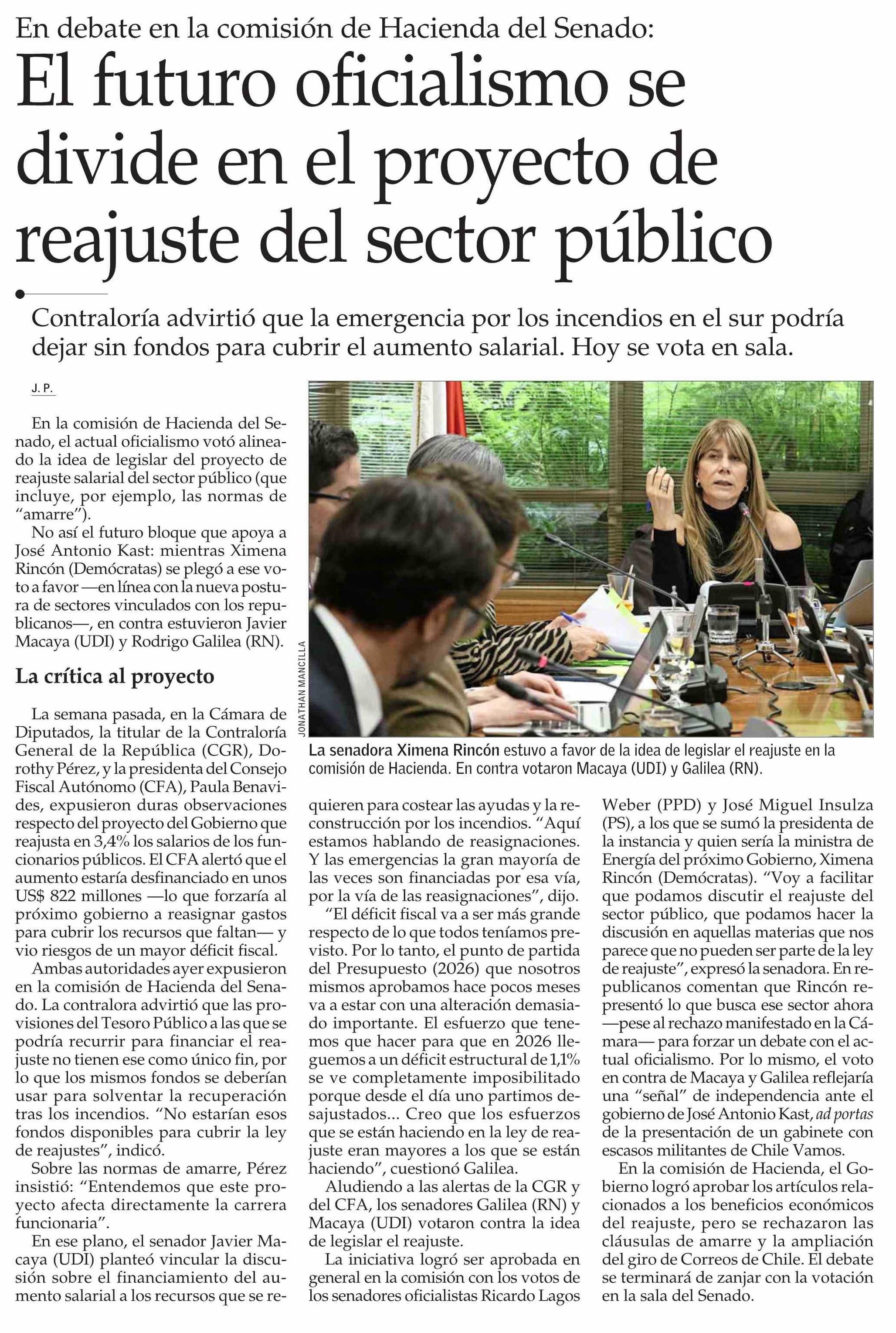 El futuro oficialismo se divide en el proyecto de reajuste del sector público