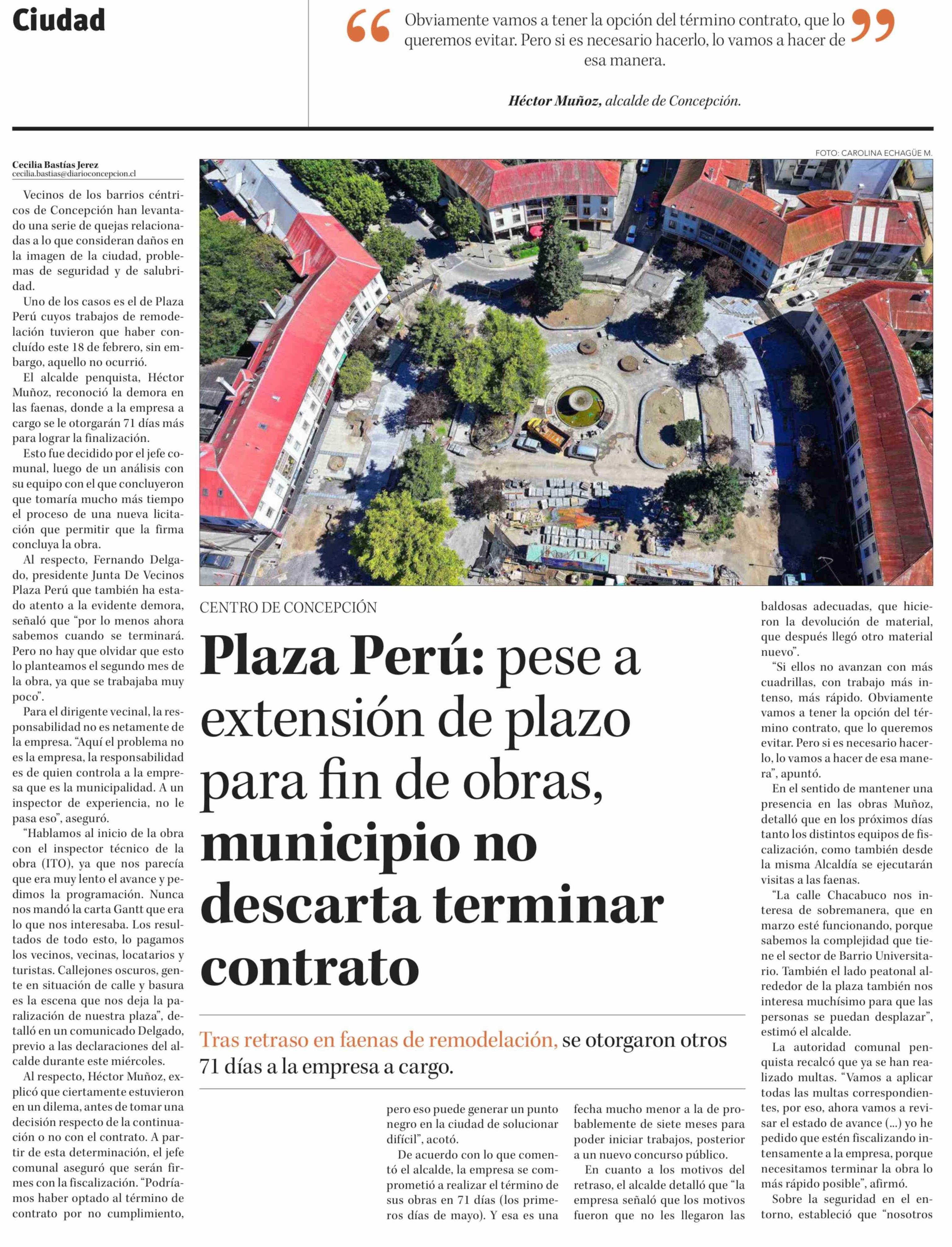 Plaza Perú: pese a extensión de plazo para fin de obras, municipio no descarta terminar contrato
