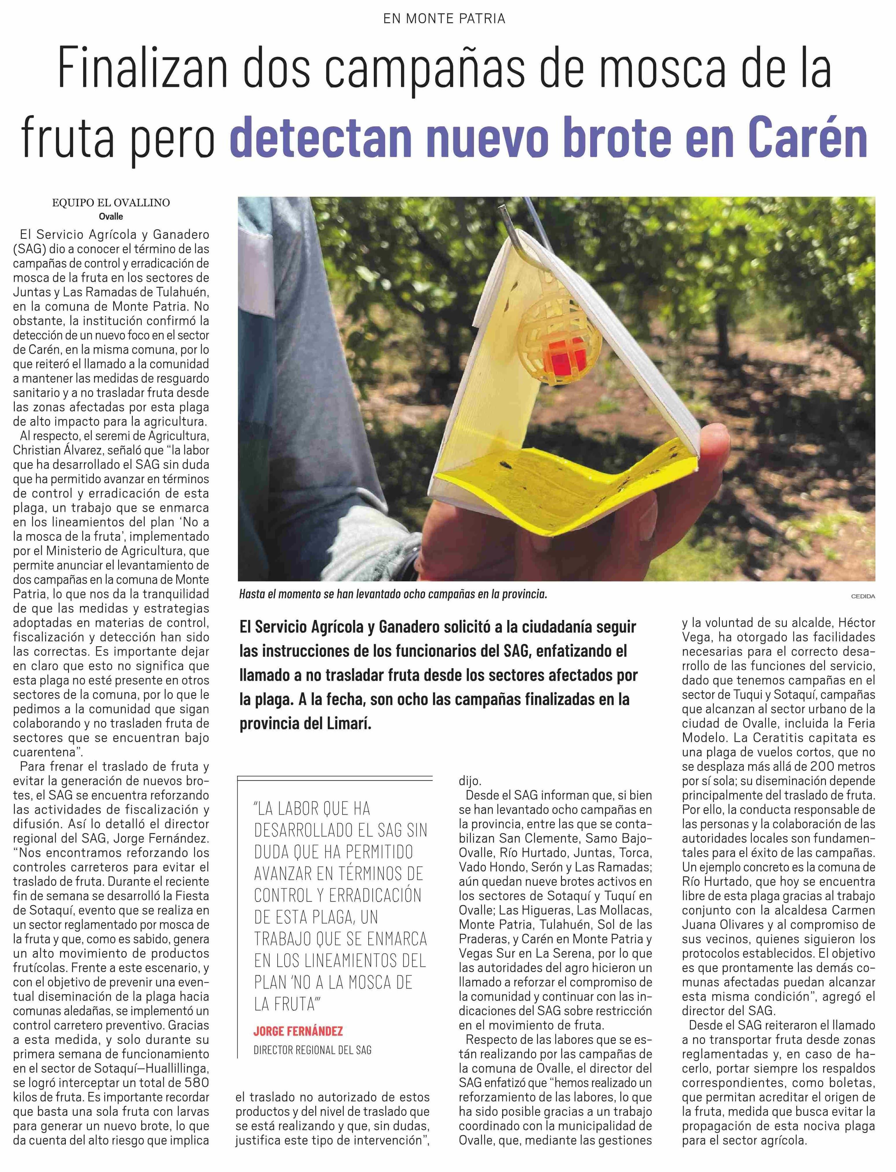 Finalizan dos campañas de mosca de la fruta pero detectan nuevo brote en Carén
