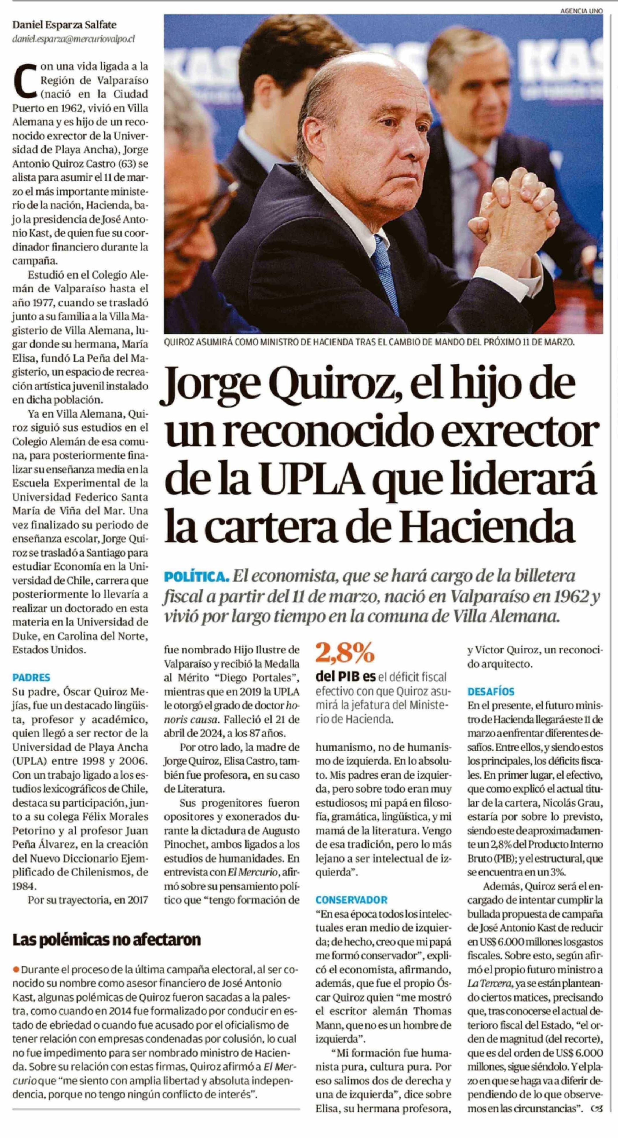 Jorge Quiroz, el hijo de un reconocido exrector de la UPLA que liderará la cartera de Hacienda