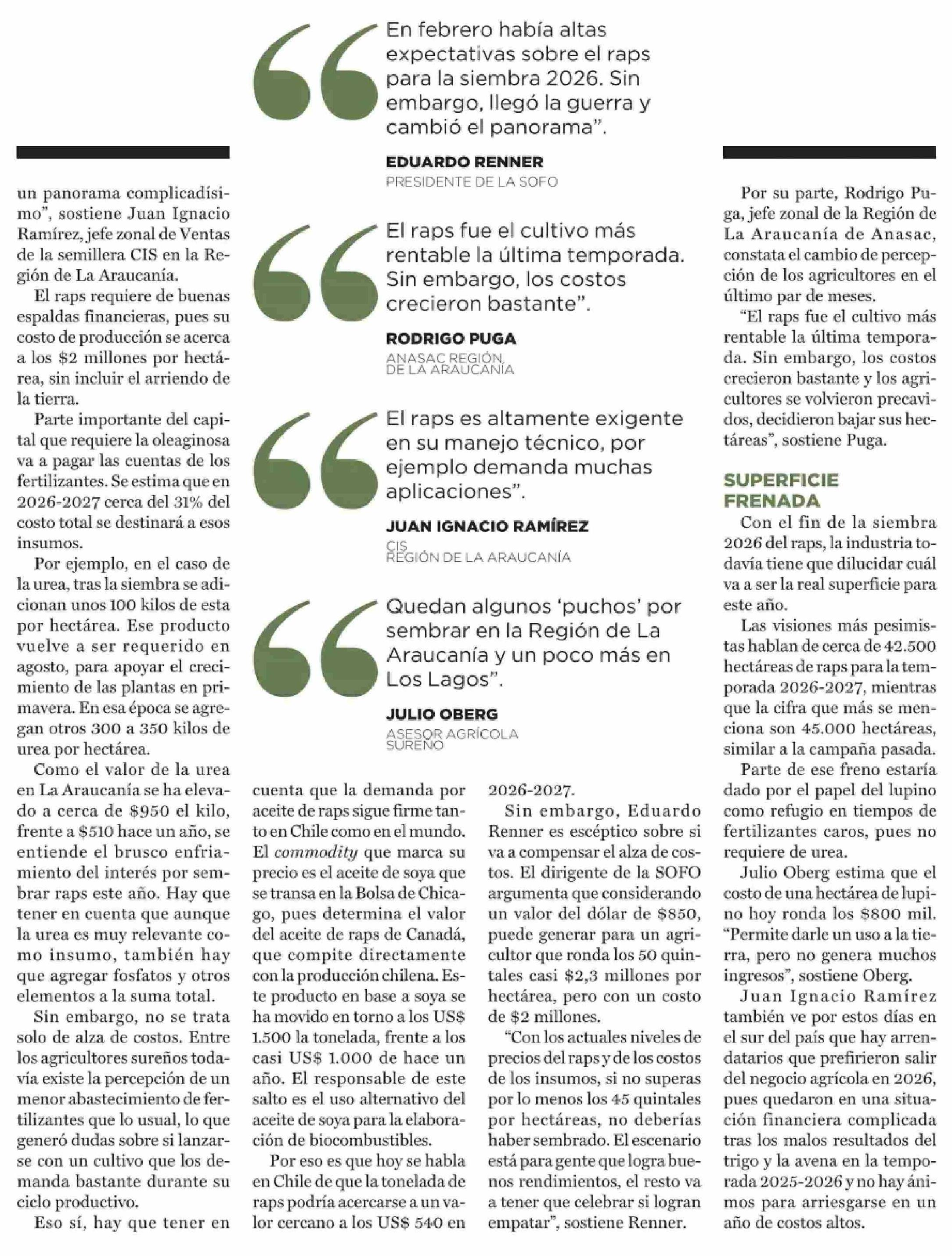 Raps se resiente por alza de los fertilizantes