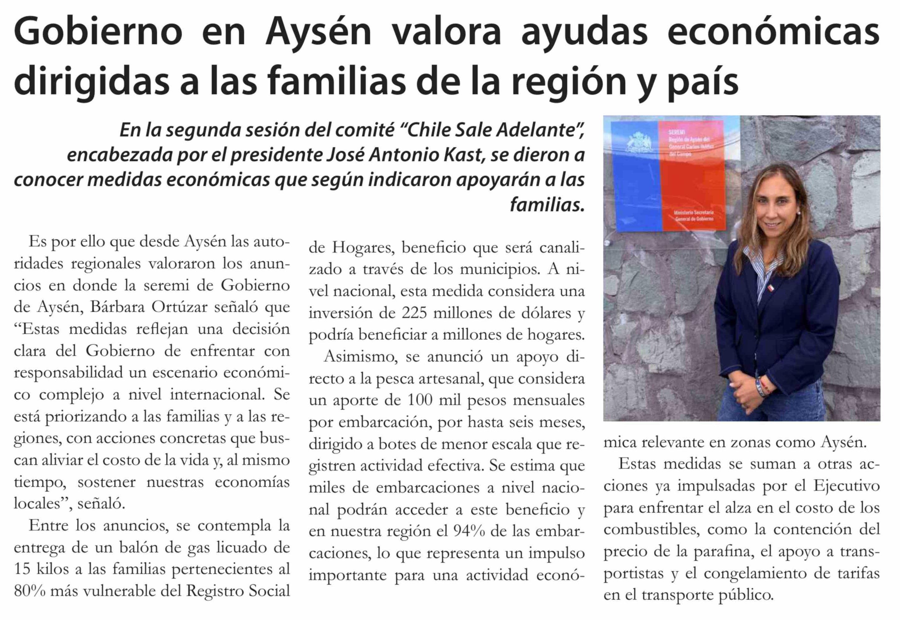 Gobierno en Aysén valora ayudas económicas dirigidas a las familias de la región y país
