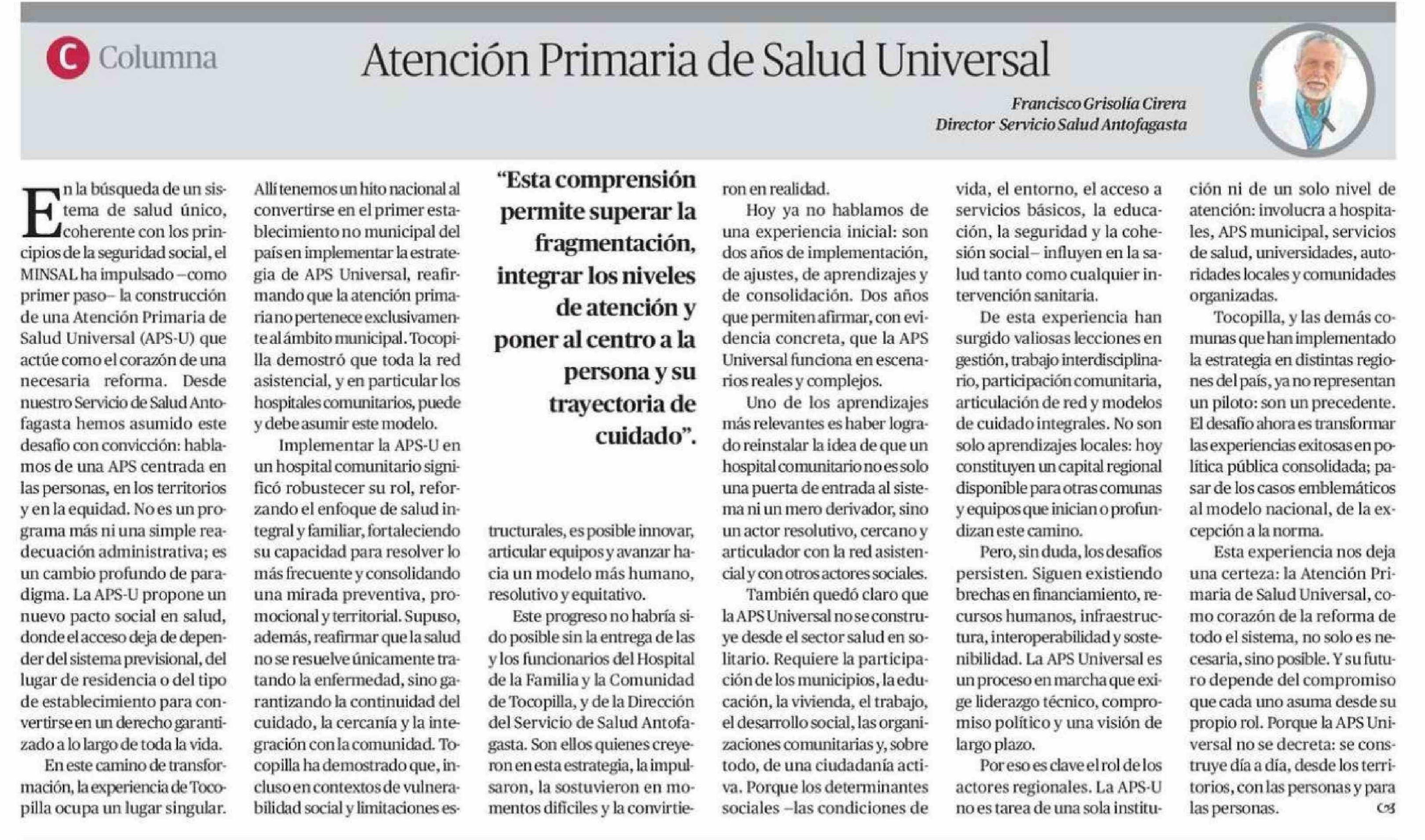 Columnas de Opinión: Atención Primaria de Salud Universal