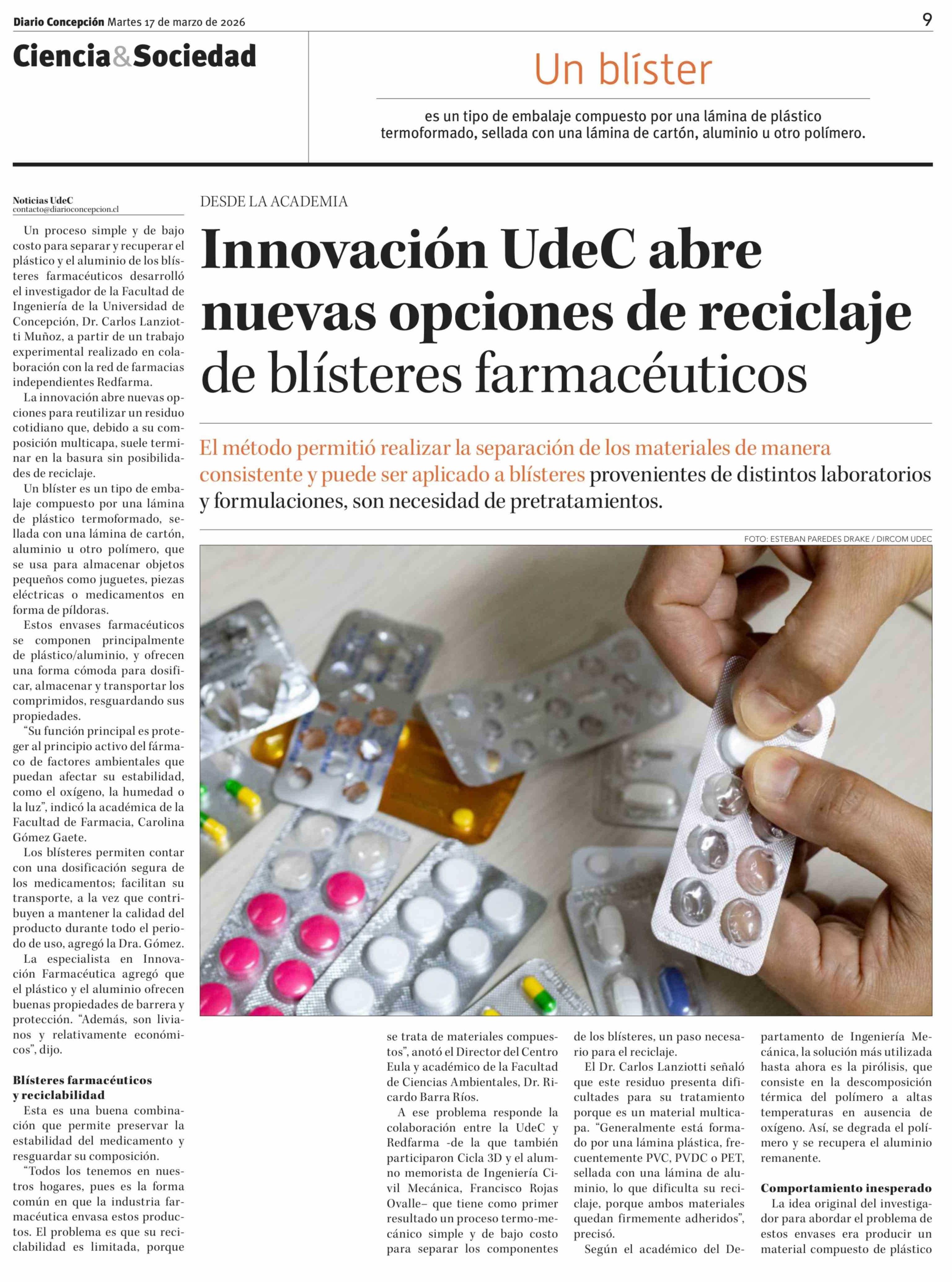 Innovación UdeC abre nuevas opciones de reciclaje de blísteres farmacéuticos