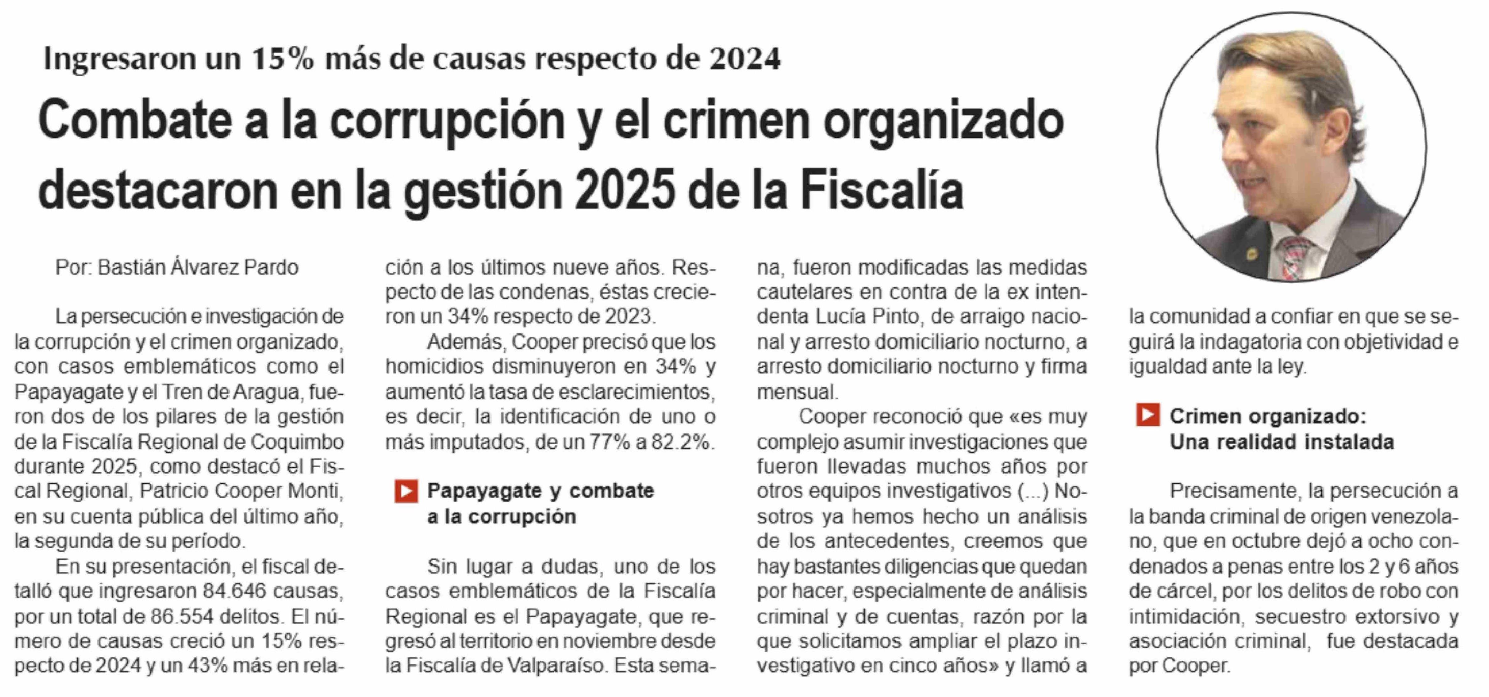 Combate a la corrupción y el crimen organizado destacaron en la gestión 2025 de la Fiscalía