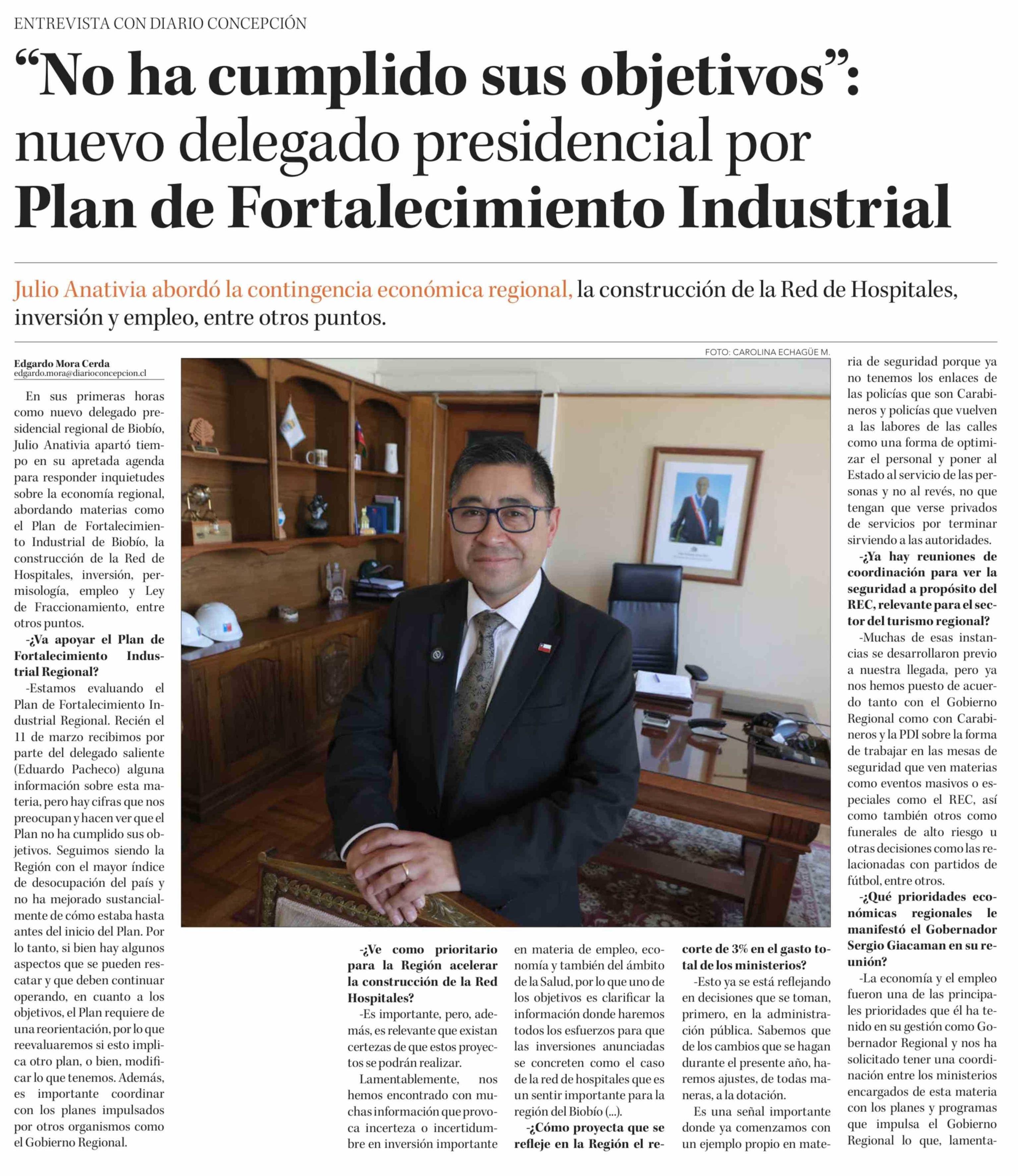 "No ha cumplido sus objetivos": nuevo delegado presidencial por Plan de Fortalecimiento Industrial
