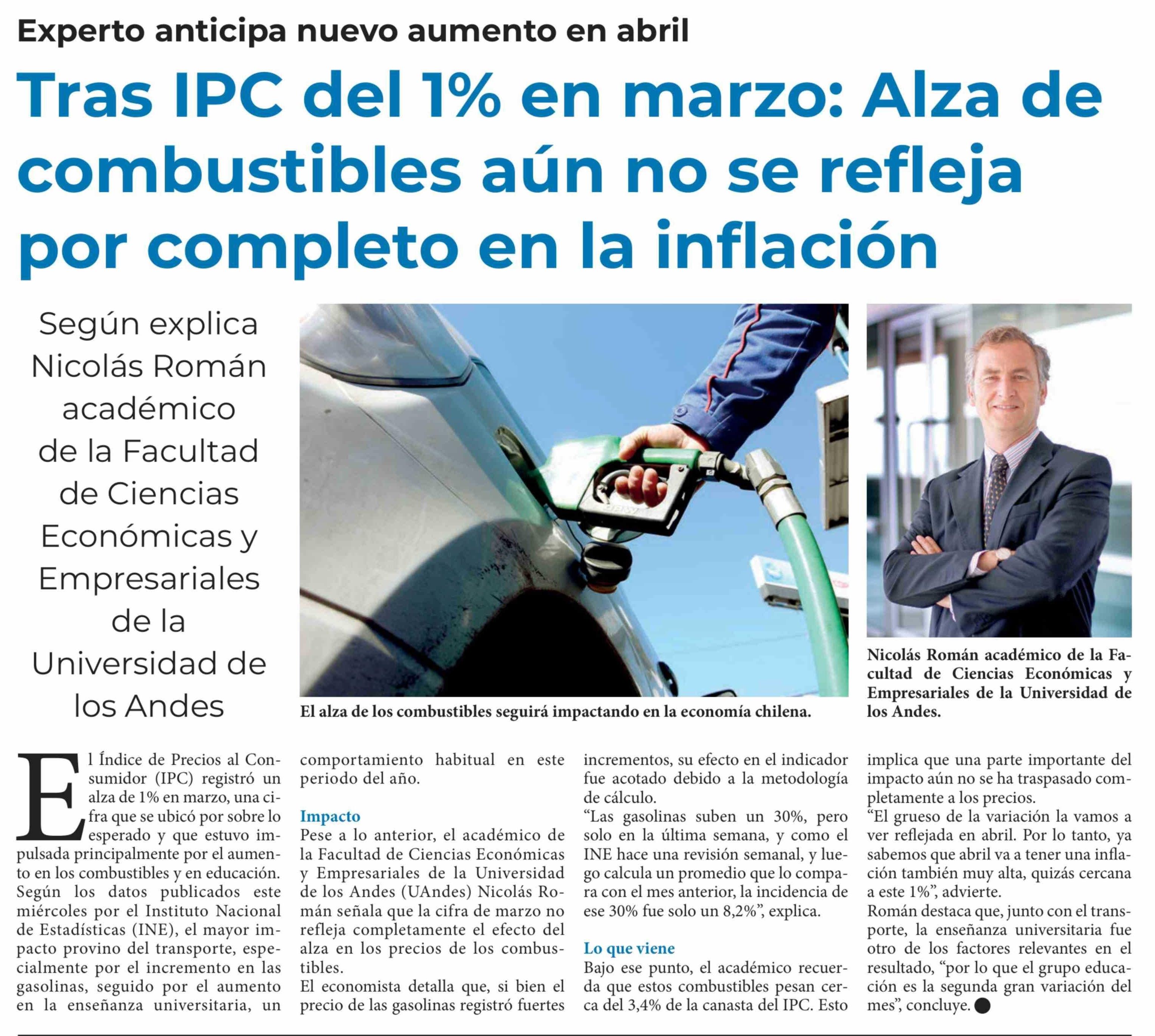 Tras IPC del 1% en marzo: Alza de combustibles aún no se refleja por completo en la inflación