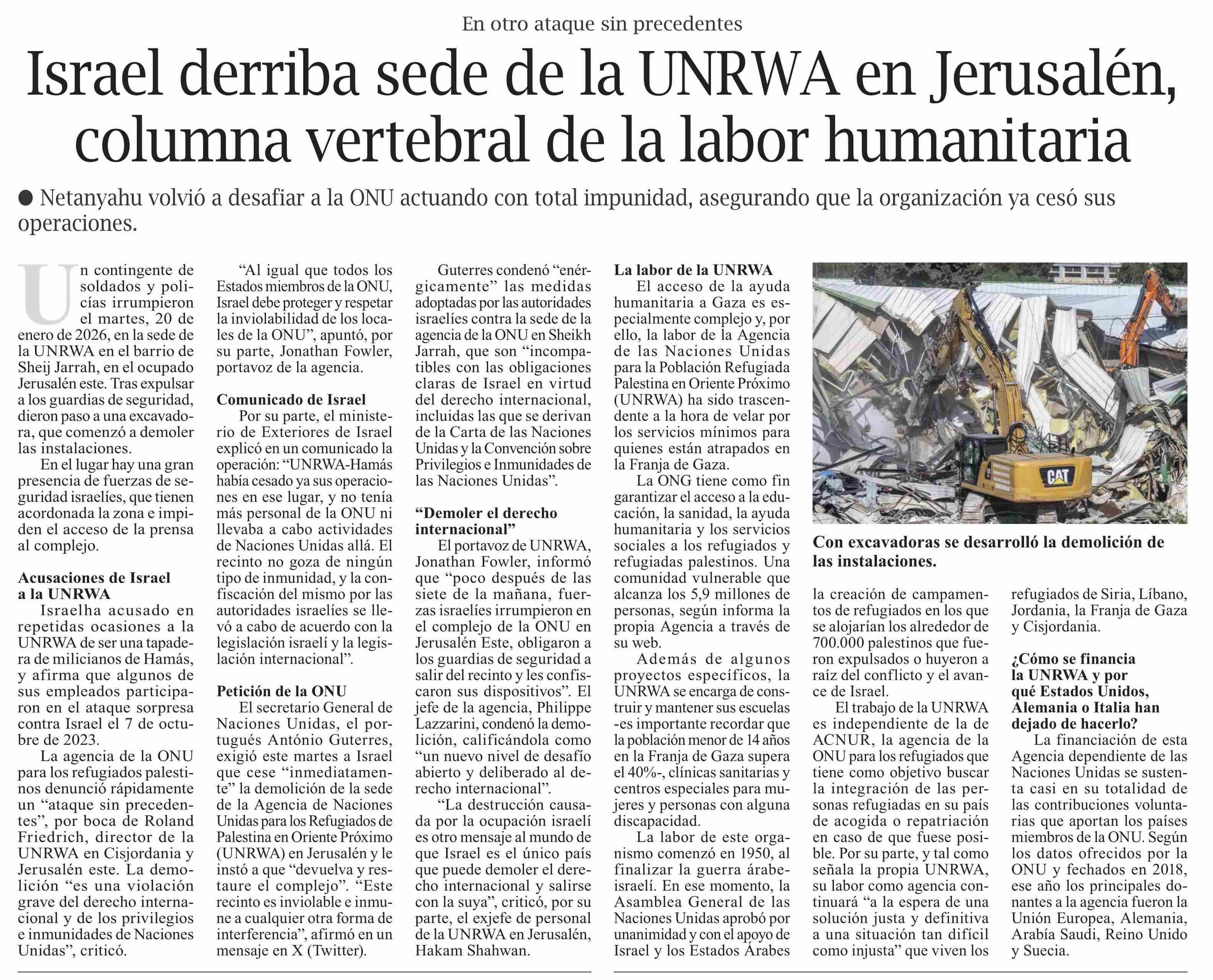 Israel derriba sede de la UNRWA en Jerusalén, columna vertebral de la labor humanitaria