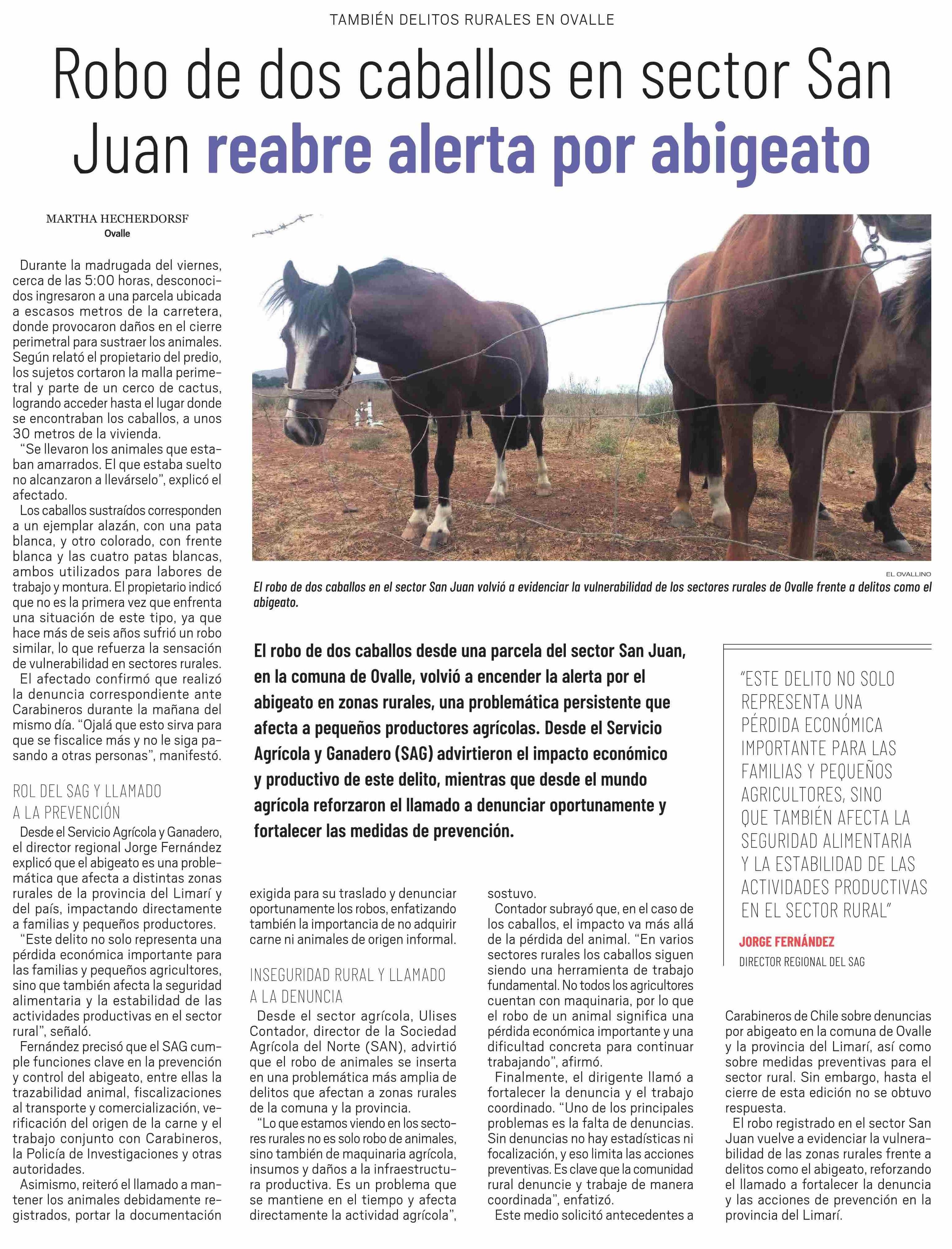 Robo de dos caballos en sector San Juan reabre alerta por abigeato