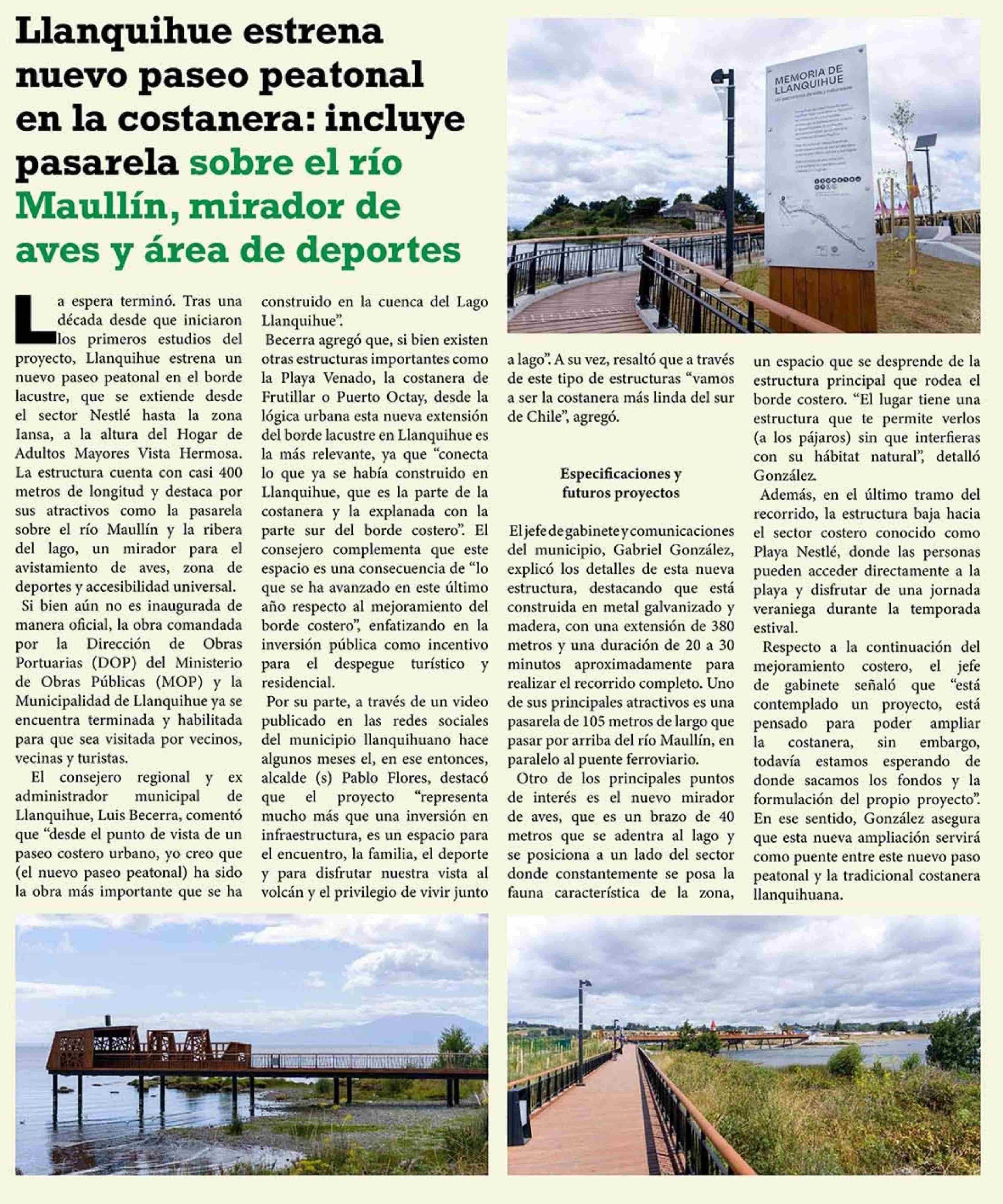 Llanquihue estrena nuevo paseo peatonal en la costanera: incluye pasarela sobre el río Maullín, mirador de aves y área de deportes