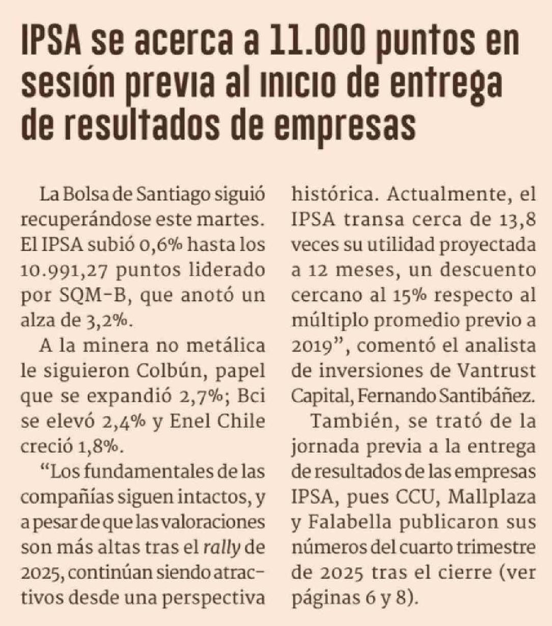 IPSA se acerca a 11.000 puntos en sesión previa al inicio de entrega de resultados de empresas