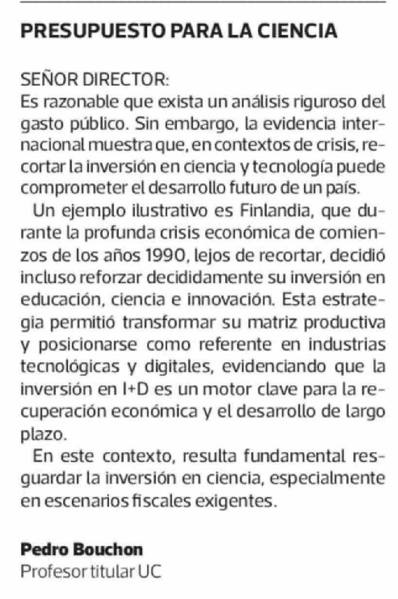 Cartas: PRESUPUESTO PARA LA CIENCIA