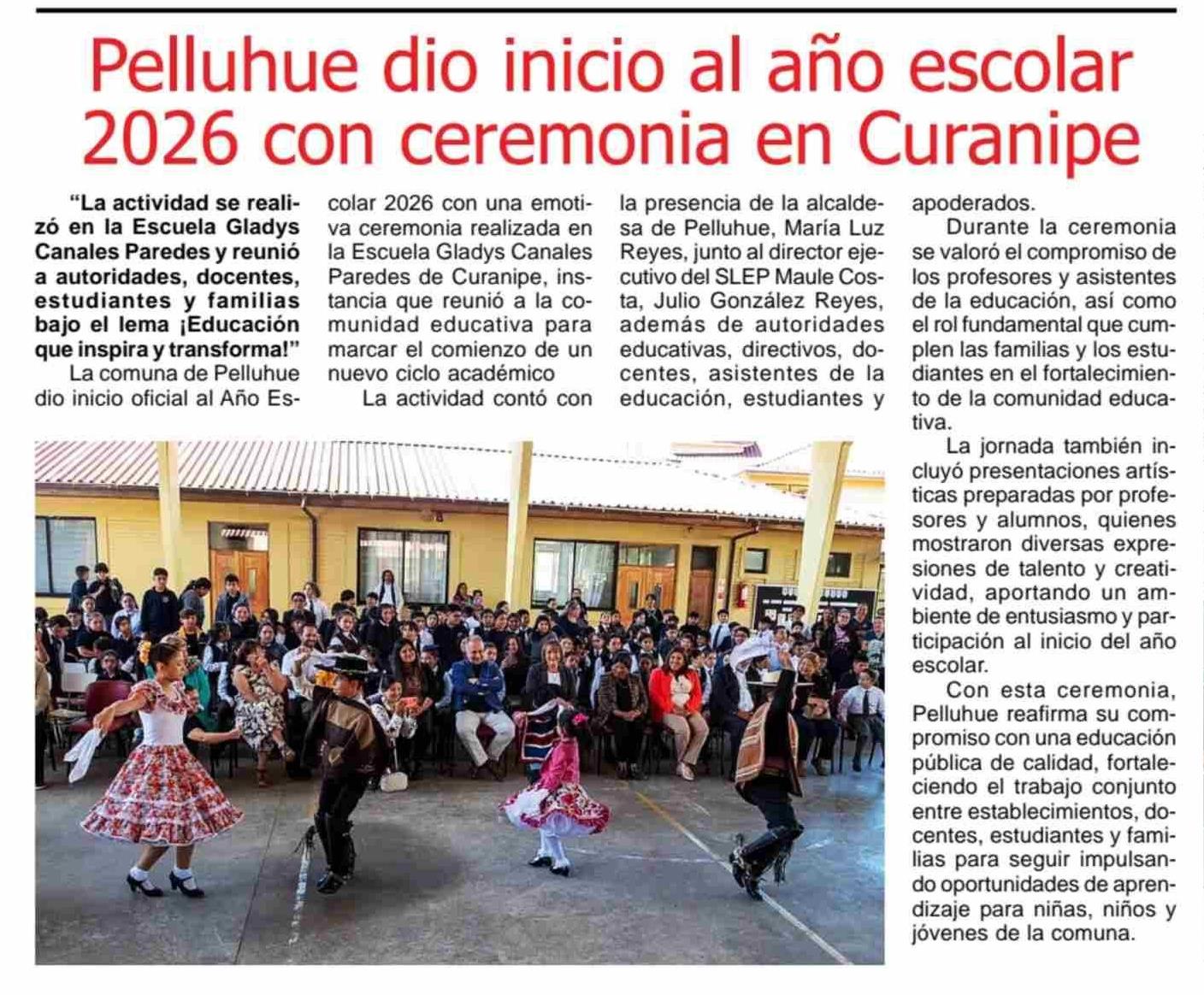 Pelluhue dio inicio al año escolar 2026 con ceremonia en Curanipe