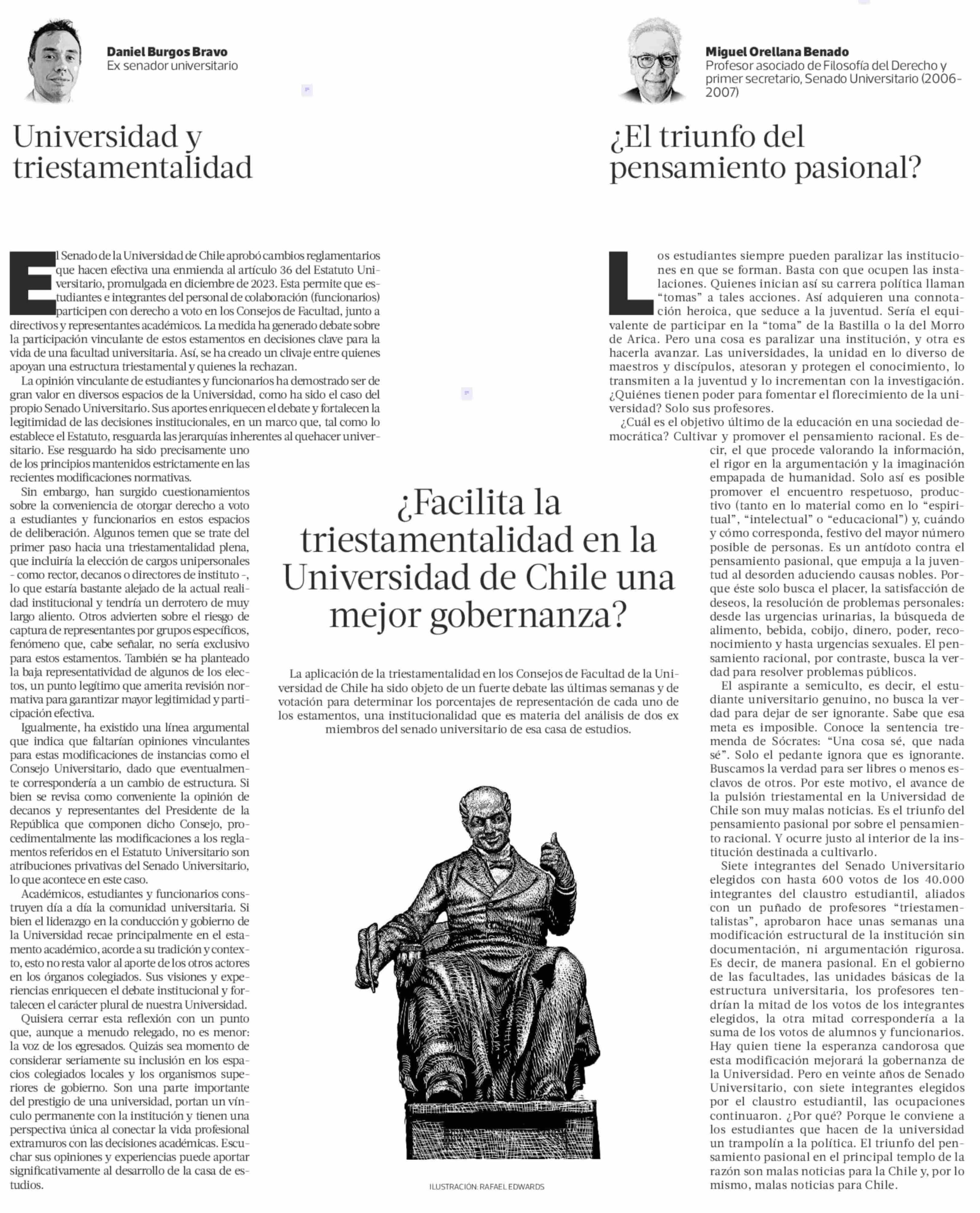 Columnas de Opinión: ¿Facilita la mejor gobernanza? Universidad de Chile una triestamentalidad en la