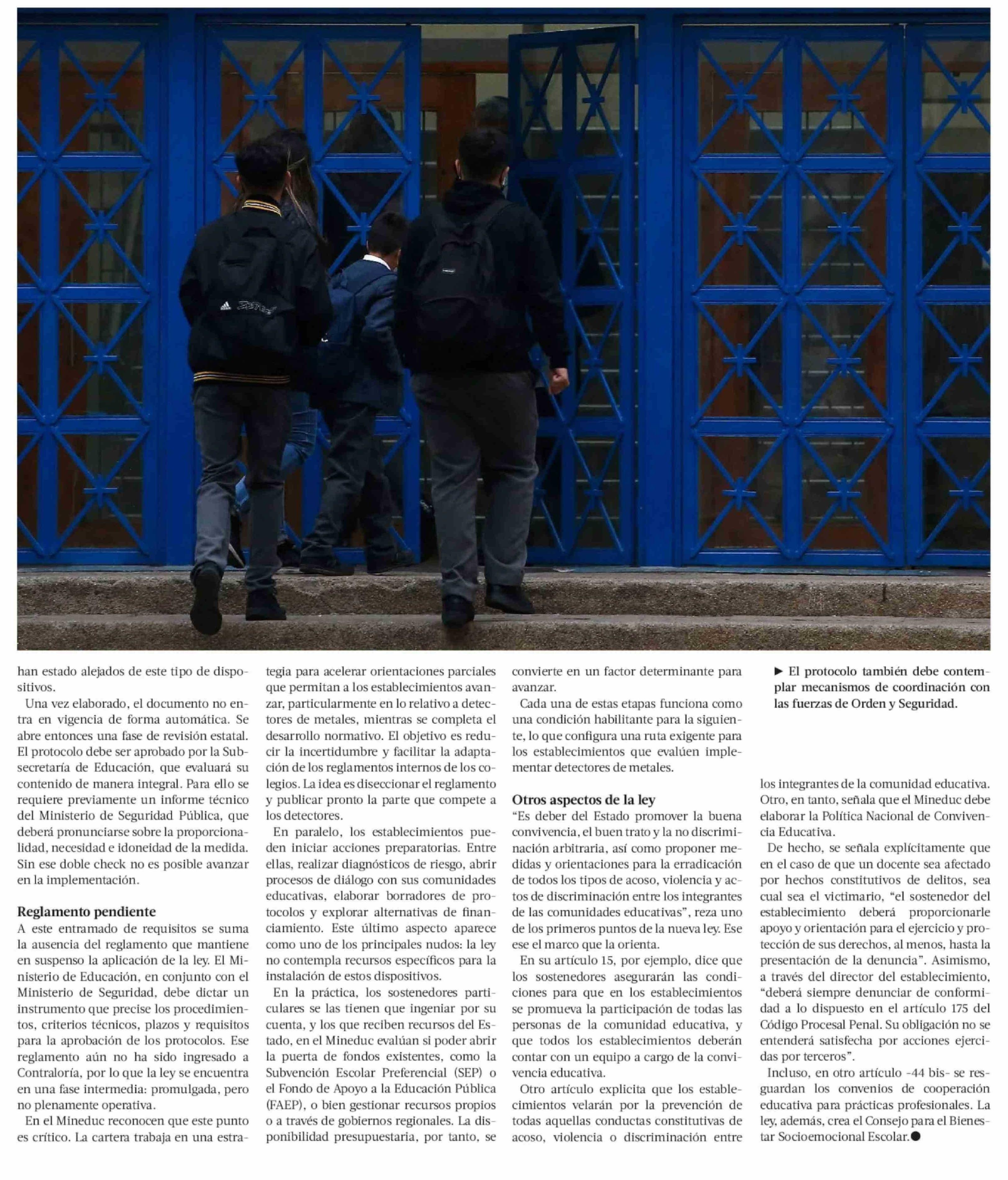 El paso a paso que deben sortear los colegios que quieran detectores de metales y las otras normas de la ley