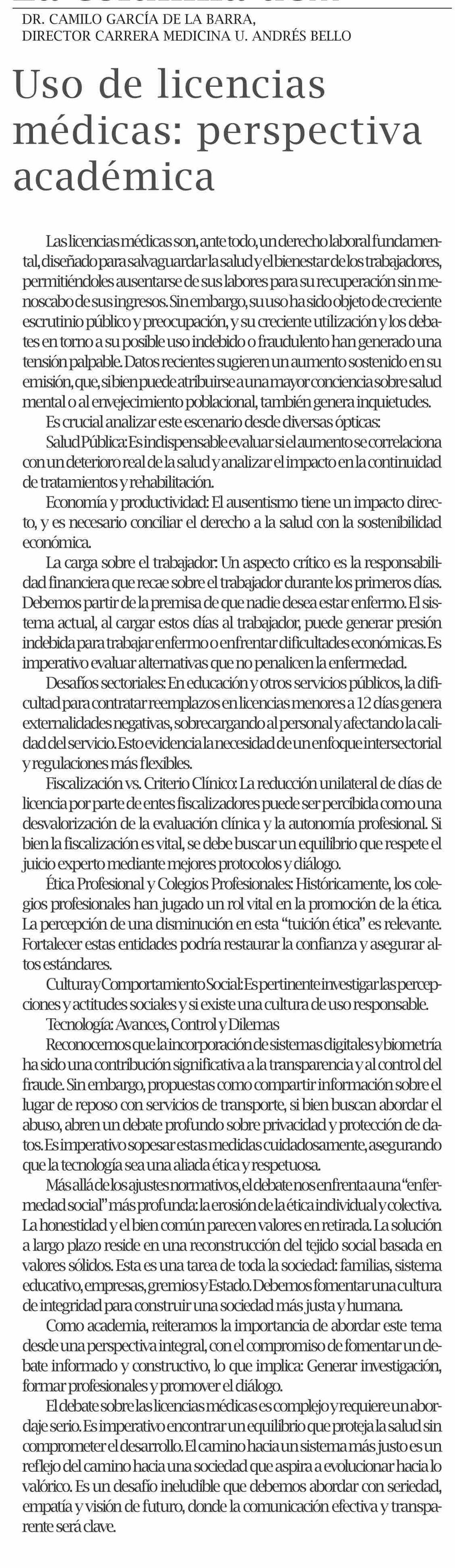 Columnas de Opinión: Uso de licencias médicas: perspectiva académica