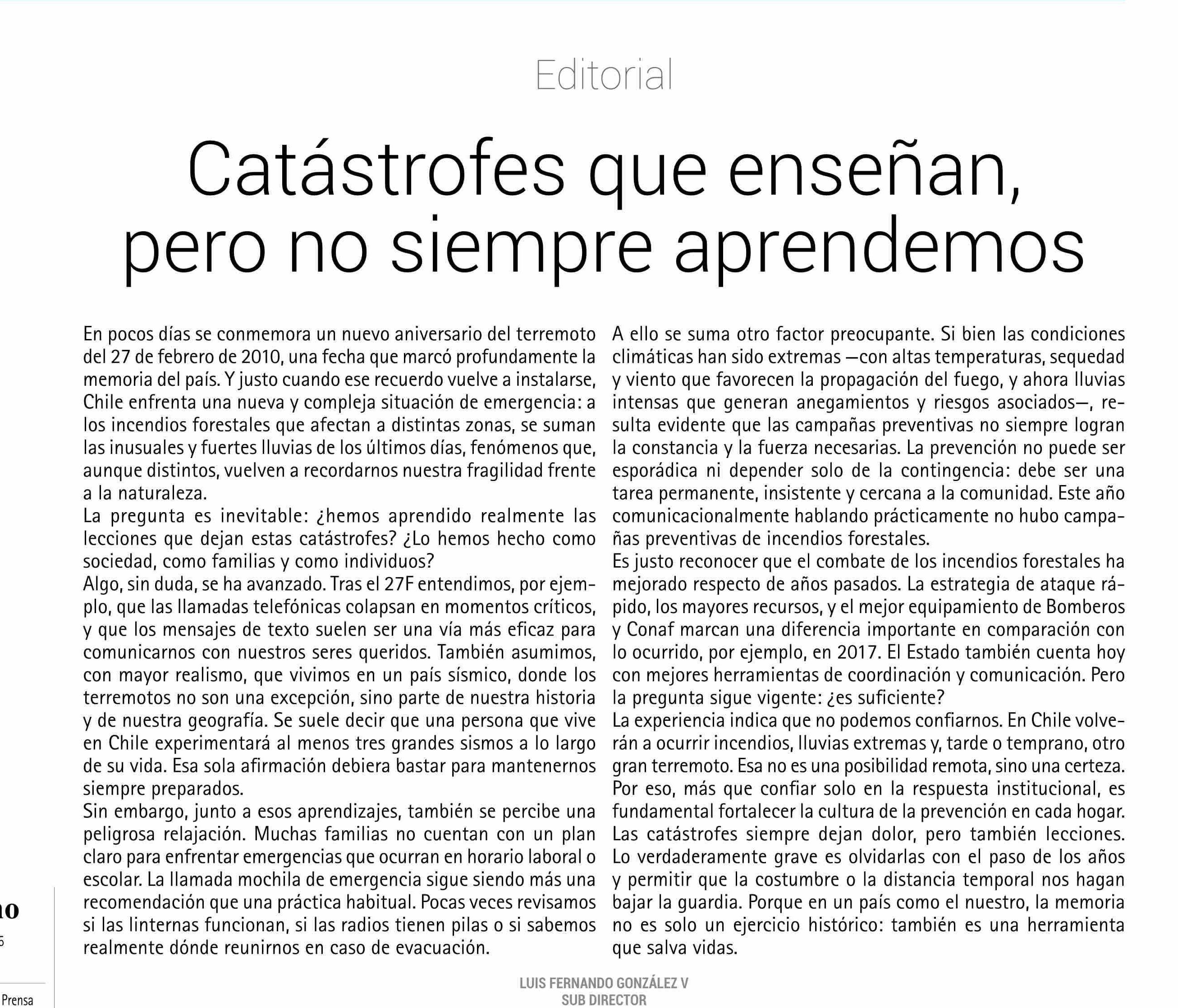 EDITORIAL: Catástrofes que enseñan, pero no siempre aprendemos