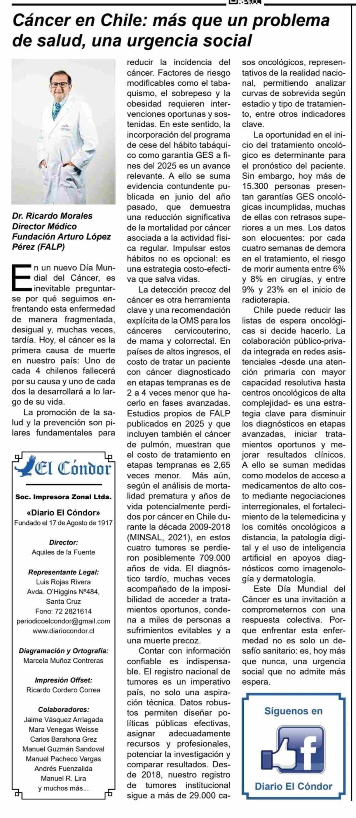 Columnas de Opinión: Cáncer en Chile: más que un problema de salud, una urgencia social