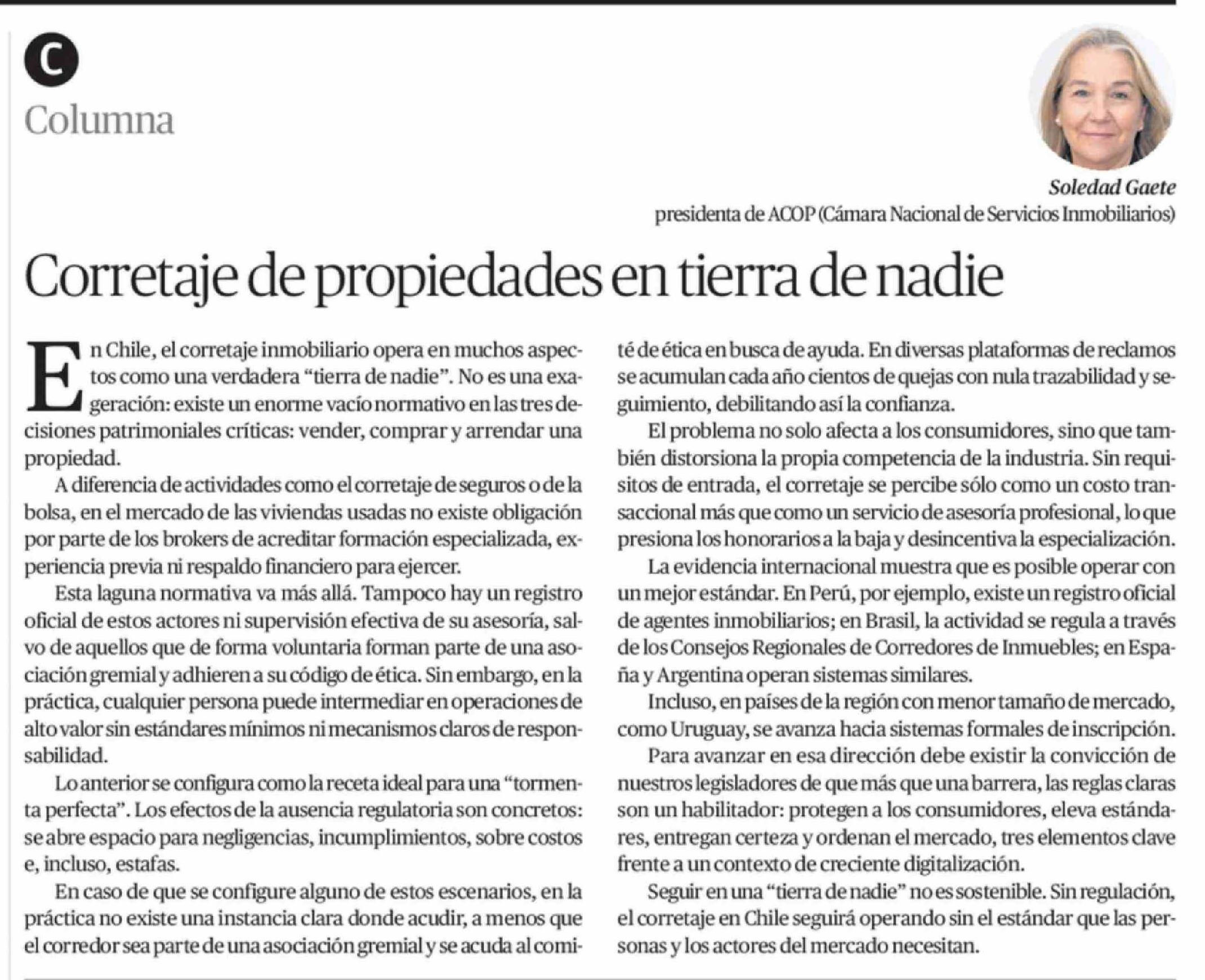 Columnas de Opinión: Corretaje de propiedades en tierra de nadie