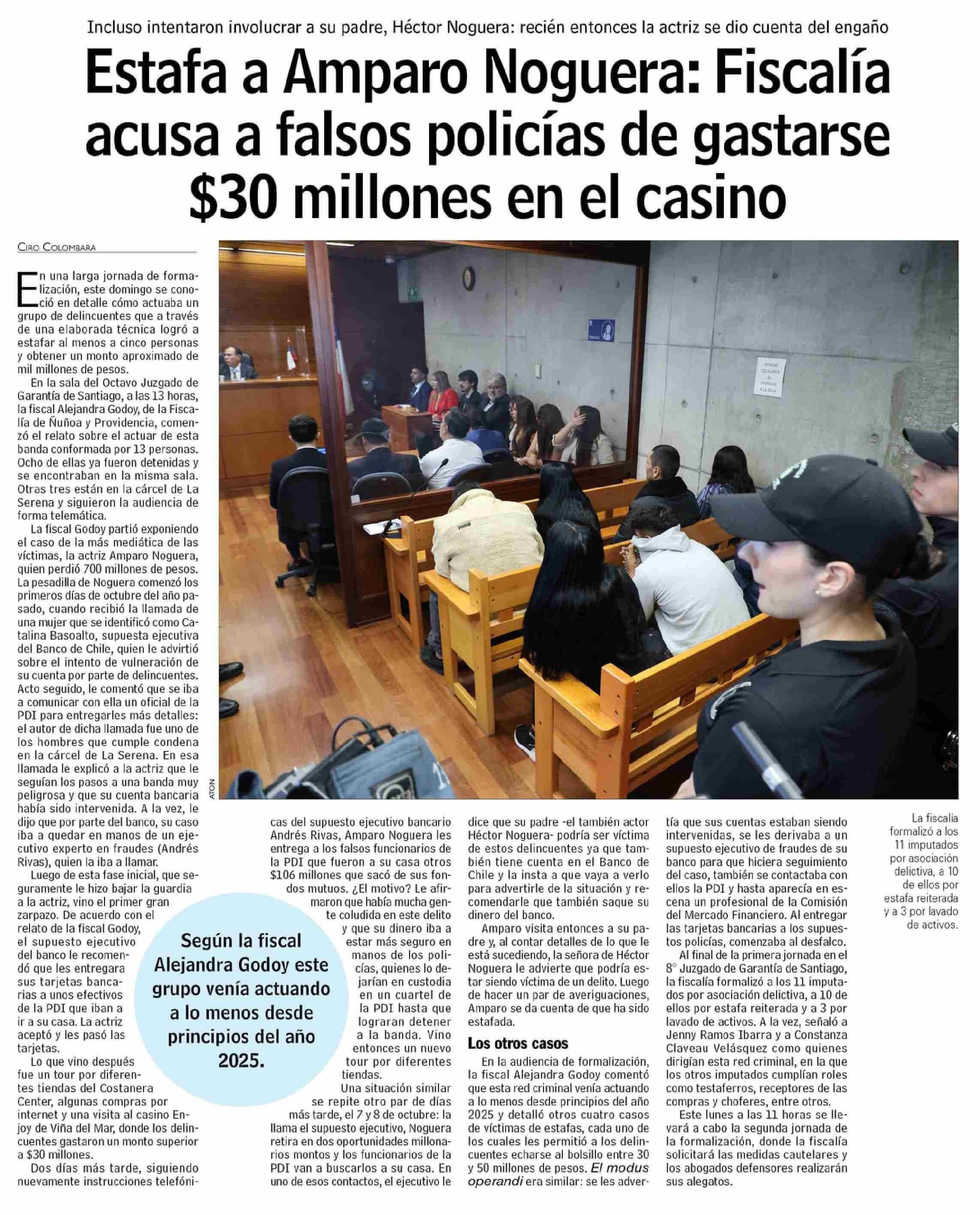 Estafa a Amparo Noguera: Fiscalía acusa a falsos policías de gastarse $30 millones en el casino