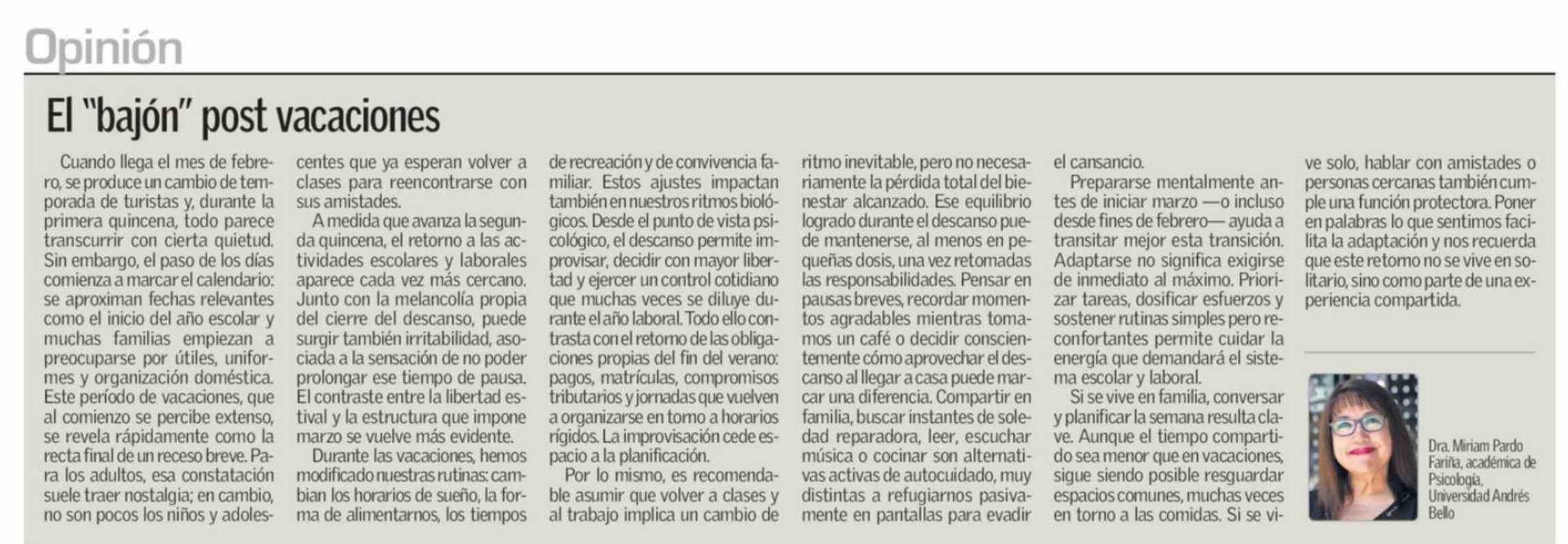 Columnas de Opinión: El "bajón" post vacaciones