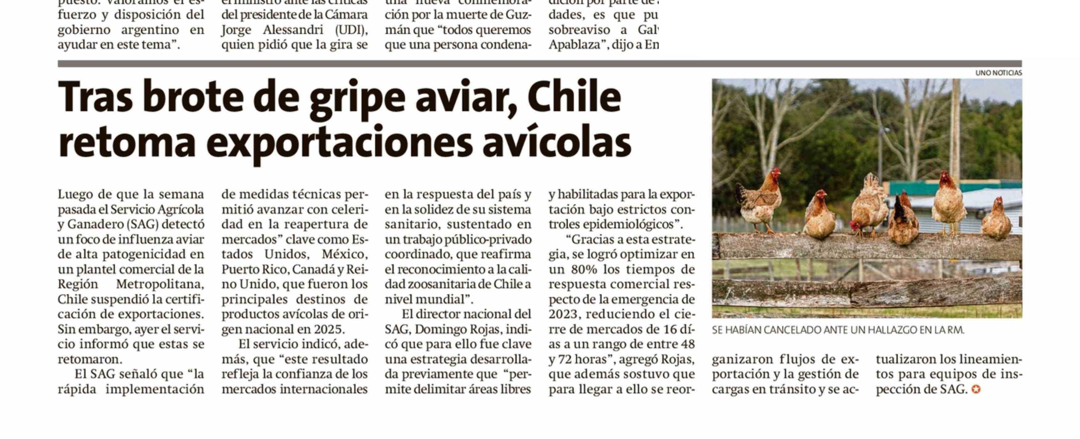 Tras brote de gripe aviar, Chile retoma exportaciones avícolas