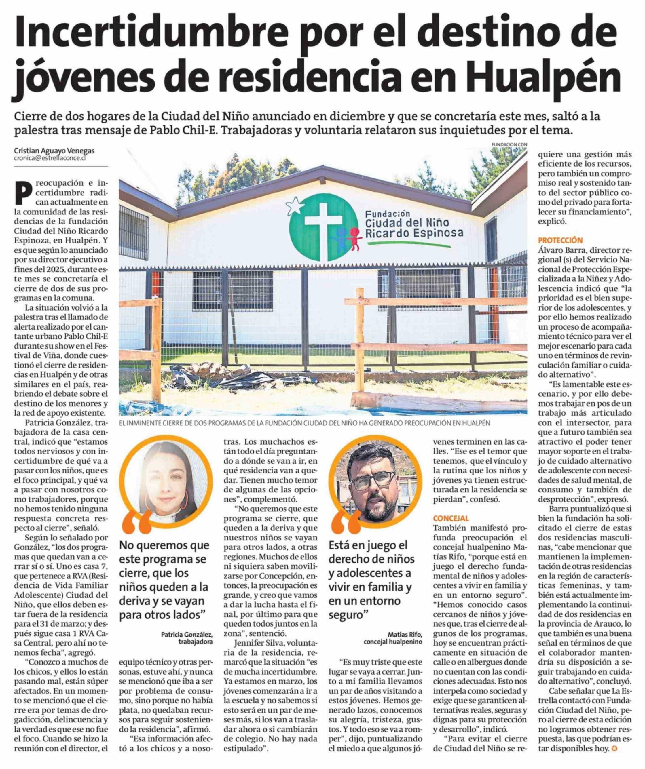 Incertidumbre por el destino de jóvenes de residencia en Hualpén