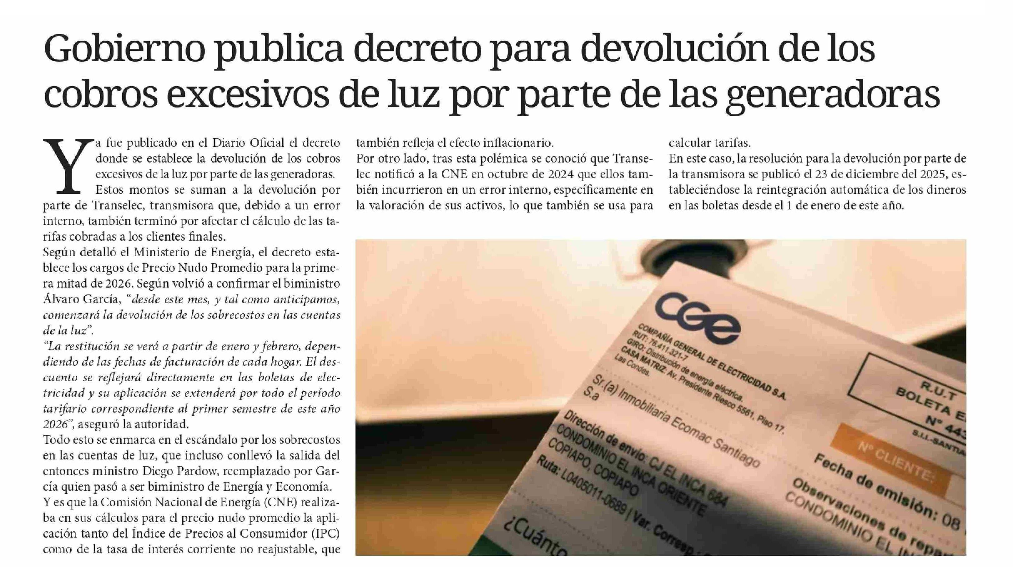 Gobierno publica decreto para devolución de los cobros excesivos de luz por parte de las generadoras