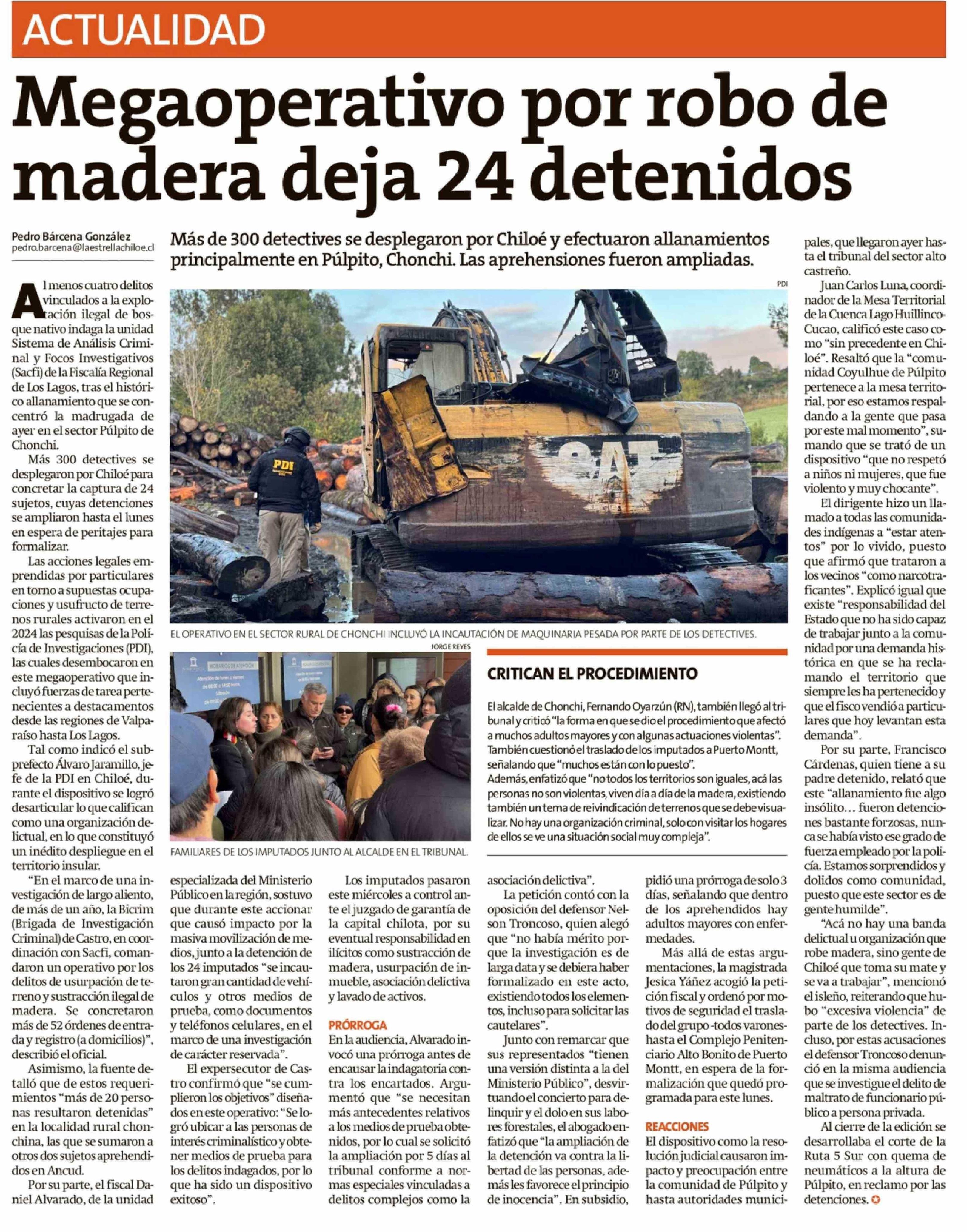 Megaoperativo por robo de madera deja 24 detenidos
