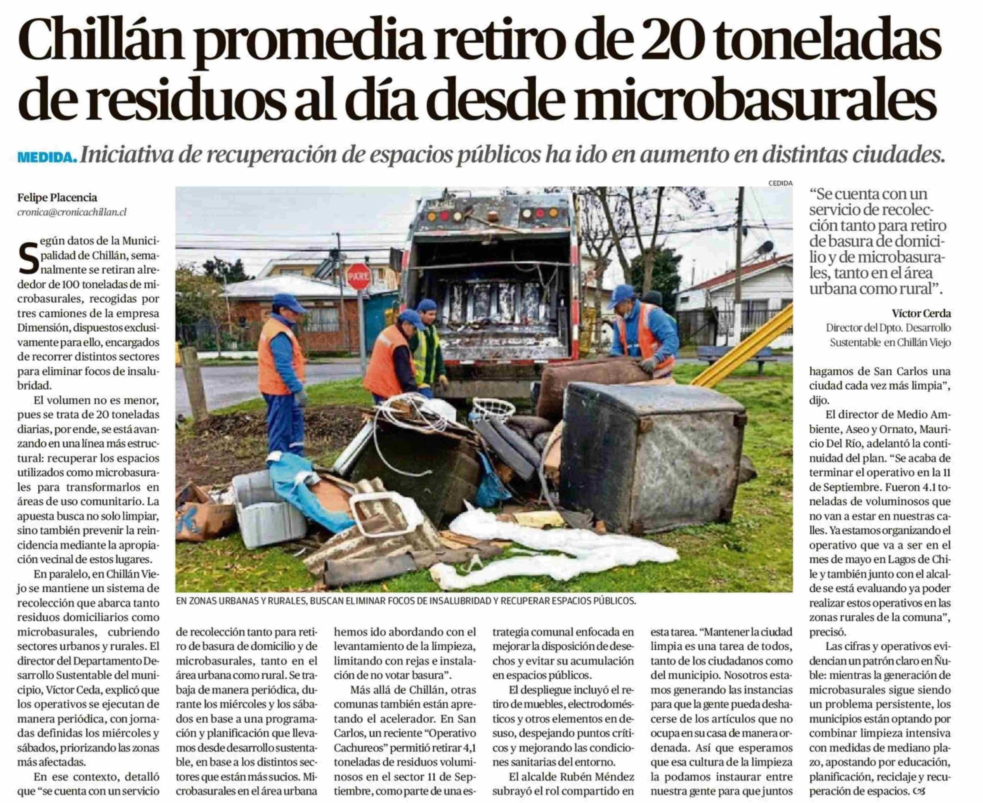 Chillán promedia retiro de 20 toneladas de residuos al día desde microbasurales