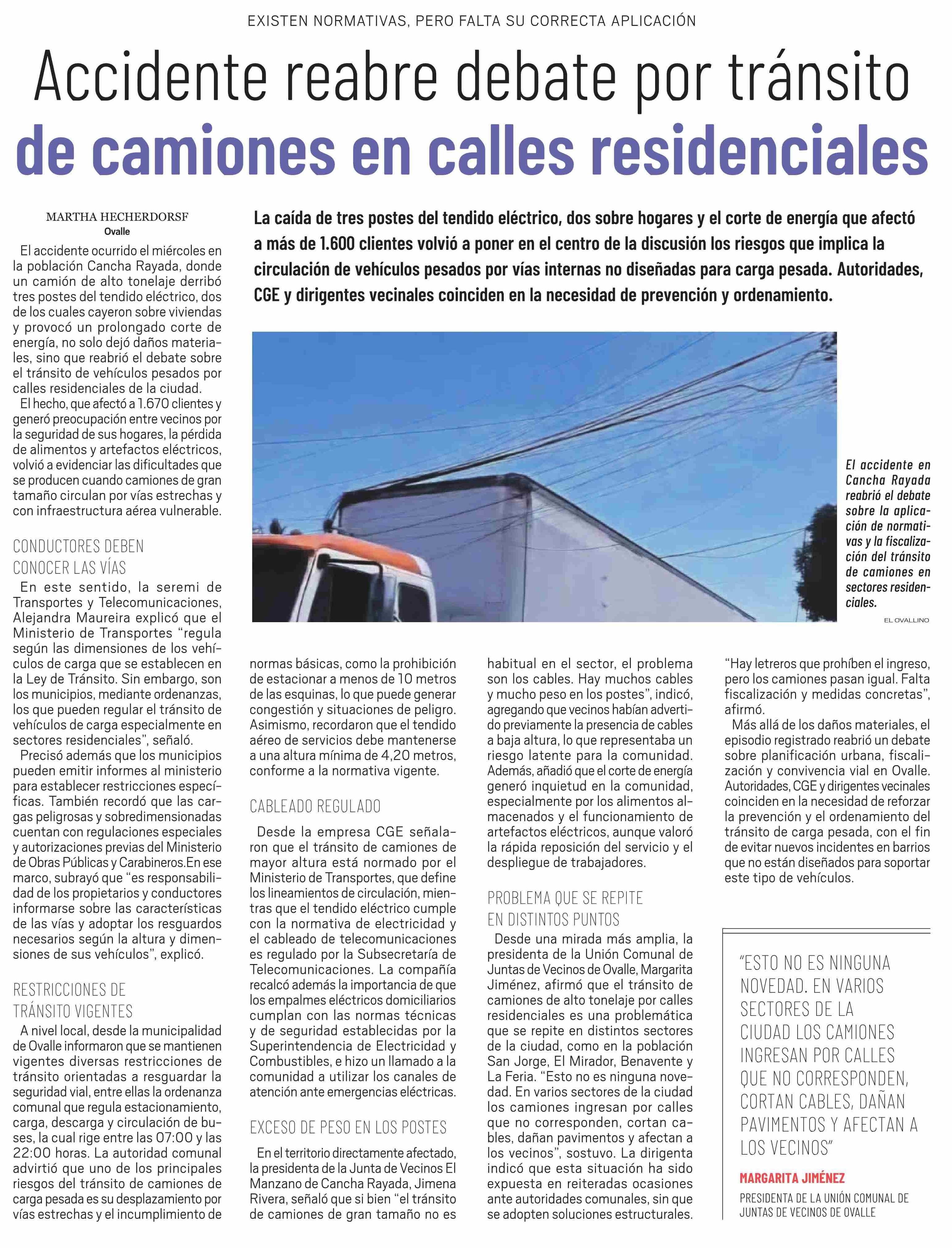 Accidente reabre debate por tránsito de camiones en calles residenciales