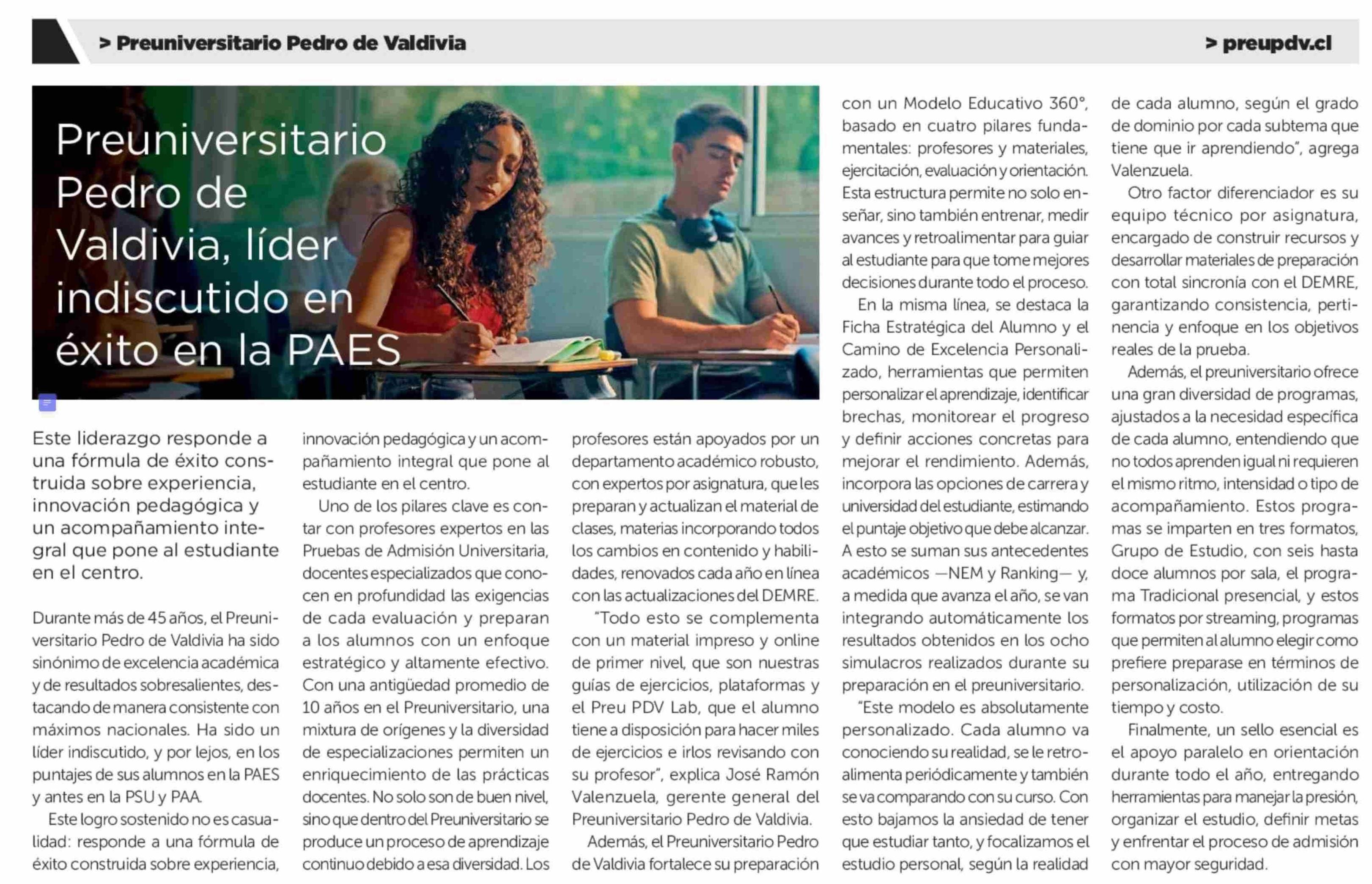 Preuniversitario Pedro de Valdivia, líder indiscutido en éxito en la PAES