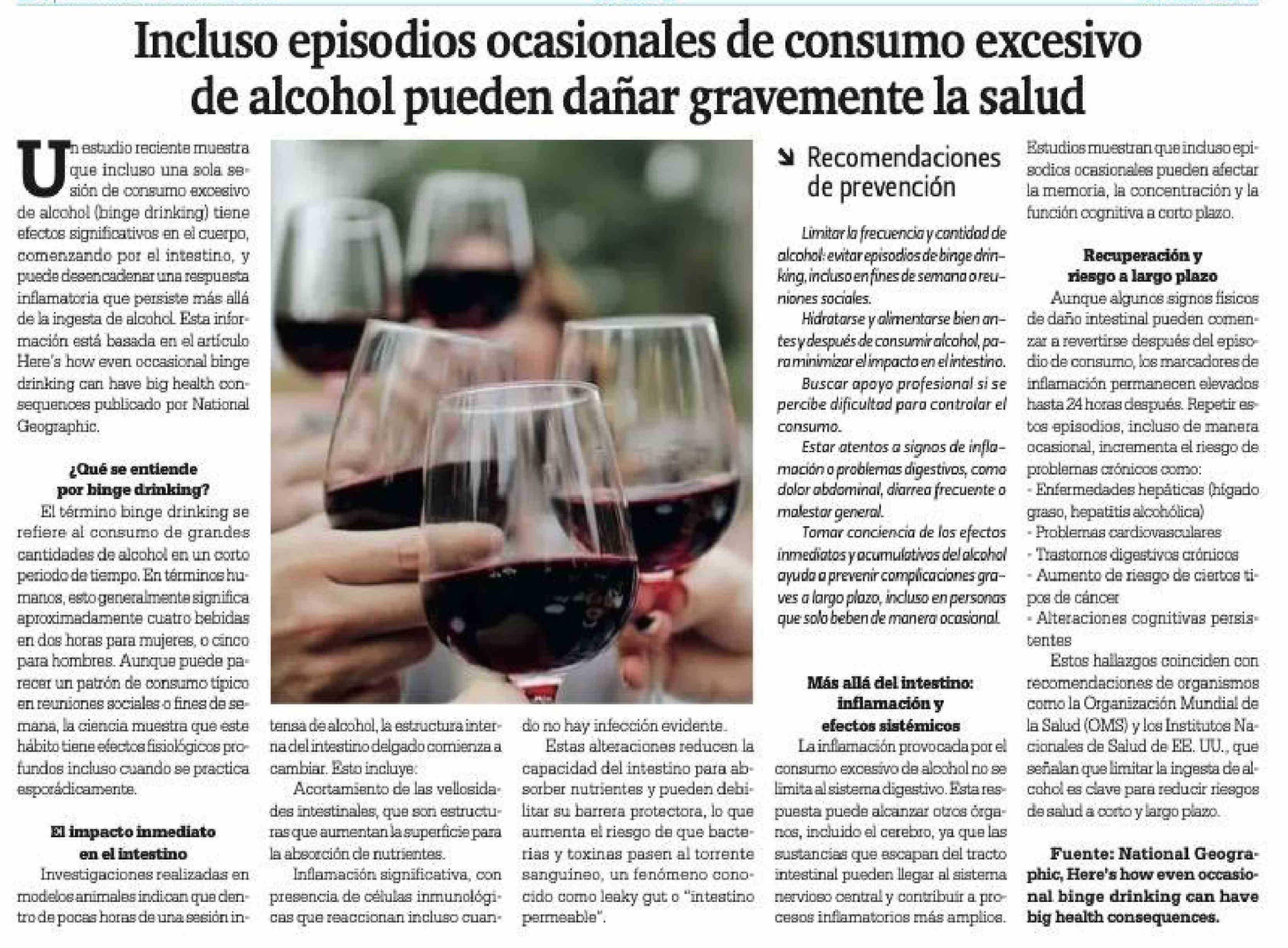 Incluso episodios ocasionales de consumo excesivo de alcohol pueden dañar gravemente la salud